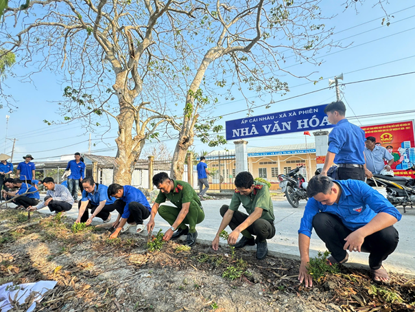 Ngay từ sáng sớm, lực lượng Công an xã đã cùng đoàn viên thanh niên và Nhân dân tham gia dọn dẹp vệ sinh, kết hợp trồng hoa dọc hai bên tuyến lộ nông thôn thuộc ấp Cai Nhàu. Với tinh thần khẩn trương, trách nhiệm, lực lượng Công an xã cùng đoàn viên thanh niên đã trồng được khoảng 1.000 gốc hoa trên chiều dài khoảng 2 km tuyến đường, góp phần tạo cảnh quan xanh, sạch, đẹp, xây dựng diện mạo nông thôn khang trang, văn minh.