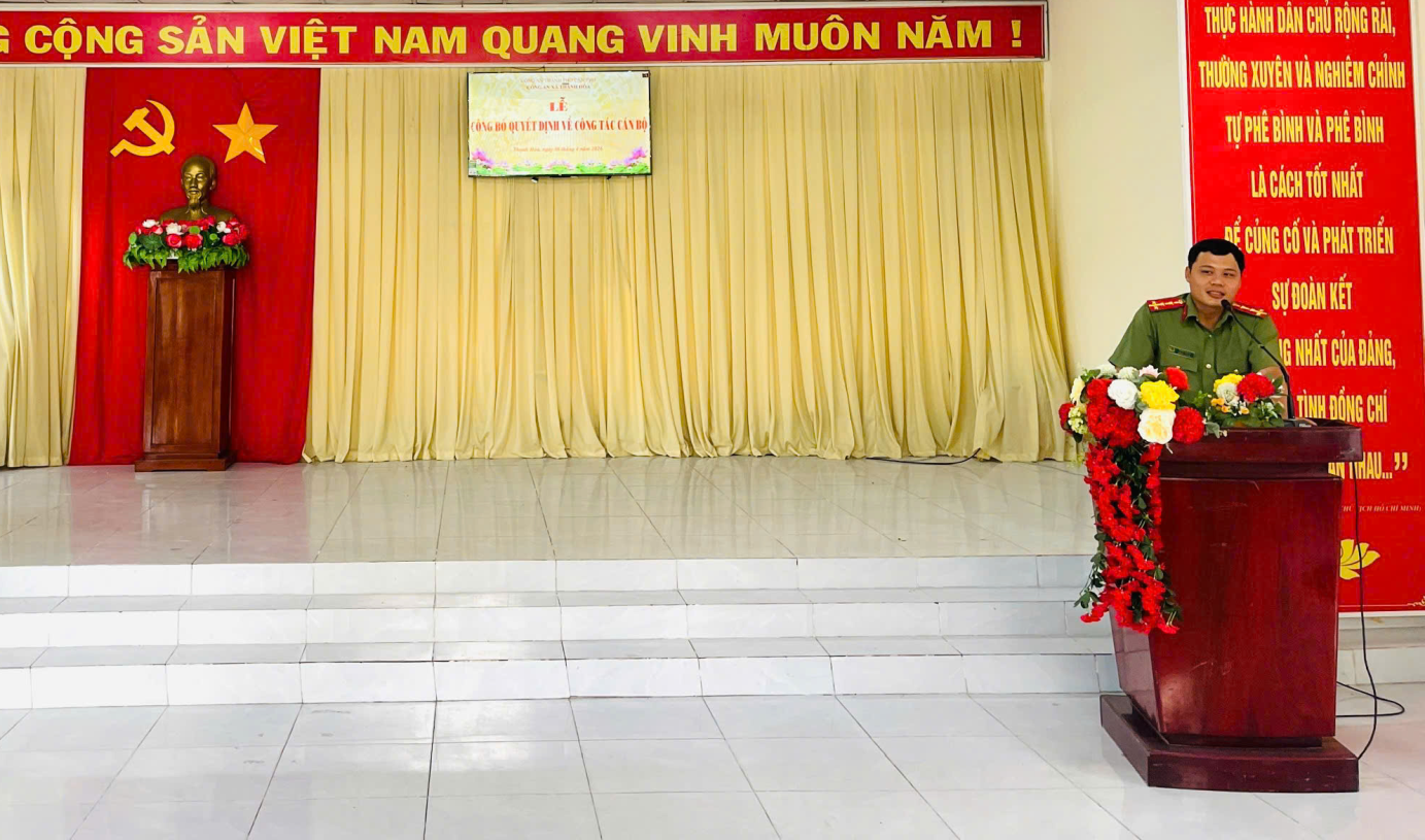 Chiều ngày 06/4/2026, Công an xã Thạnh Hòa tổ chức lễ công bố quyết định của Trưởng Công an xã về việc kiện toàn các chức danh Tổ trưởng, Phó Tổ trưởng các Tổ nghiệp vụ thuộc Công an xã.