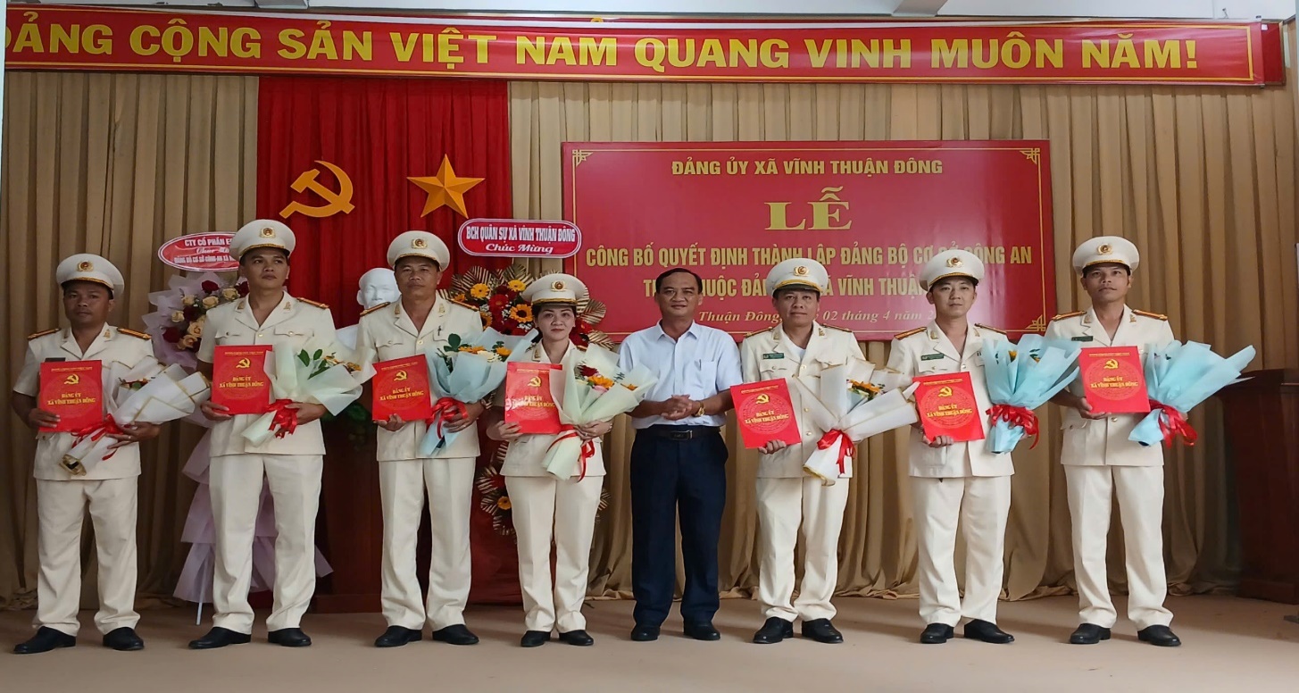 Tại buổi lễ, đại diện Đảng ủy xã thông qua Quyết định thành lập Đảng bộ Công an xã Vĩnh Thuận Đông trên cơ sở từ Chi bộ Công an xã. Theo đó, Đảng bộ Công an xã được thành lập với 39 đảng viên, tổ chức thành 05 chi bộ trực thuộc, có cơ cấu chặt chẽ, bảo đảm đầy đủ các điều kiện theo quy định, không chỉ tạo nền tảng vững chắc để phát huy vai trò hạt nhân chính trị trong lãnh đạo toàn diện các mặt công tác Công an ở địa phương góp phần nâng cao năng lực lãnh đạo, sức chiến đấu của tổ chức Đảng, bảo đảm sự lãnh đạo tập trung, thống nhất, đồng bộ, hiệu quả trong thực hiện nhiệm vụ bảo đảm an ninh chính trị, trật tự an toàn xã hội và xây dựng lực lượng Công an xã trong sạch, vững mạnh, chính quy, tinh nhuệ, đáp ứng yêu cầu nhiệm vụ trong tình hình mới. Ban Chấp hành Đảng bộ Công an xã gồm 07 đồng chí. Đồng chí Phạm Trung Kiên, Trưởng Công an xã được chỉ định giữ chức vụ Bí thư Đảng ủy; đồng chí Nguyễn Thị Thu Hương, Phó Trưởng Công an xã giữ chức vụ Phó Bí thư Đảng uỷ nhiệm kỳ 2025 - 2030. Chỉ định 03 đồng chí giữ chức vụ Chủ nhiệm, Phó Chủ nhiệm và Ủy viên Ủy ban kiểm tra.