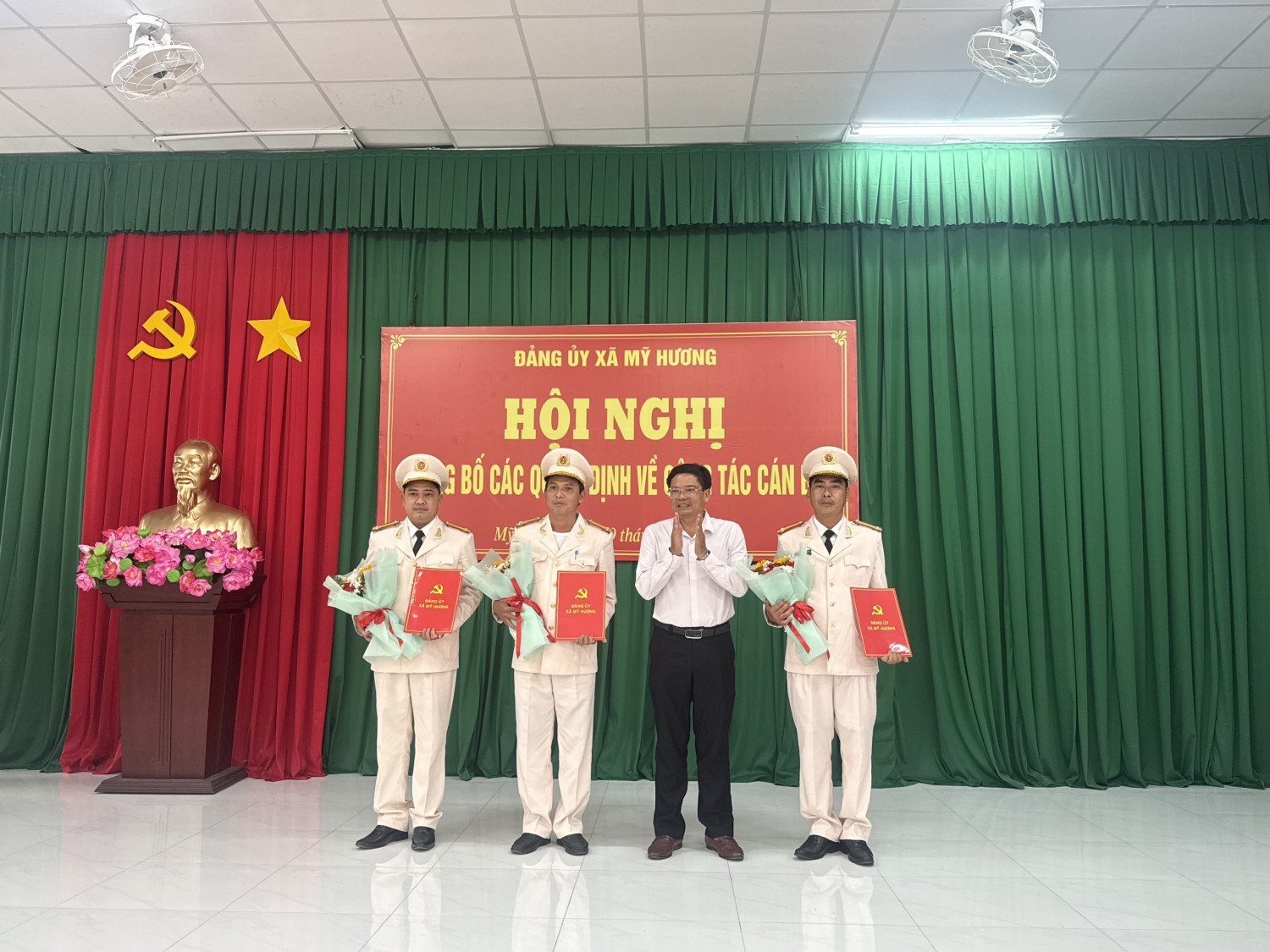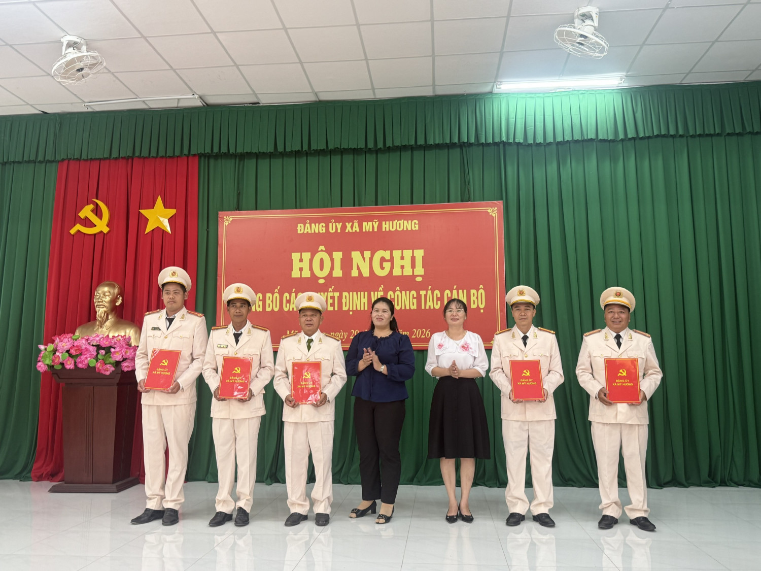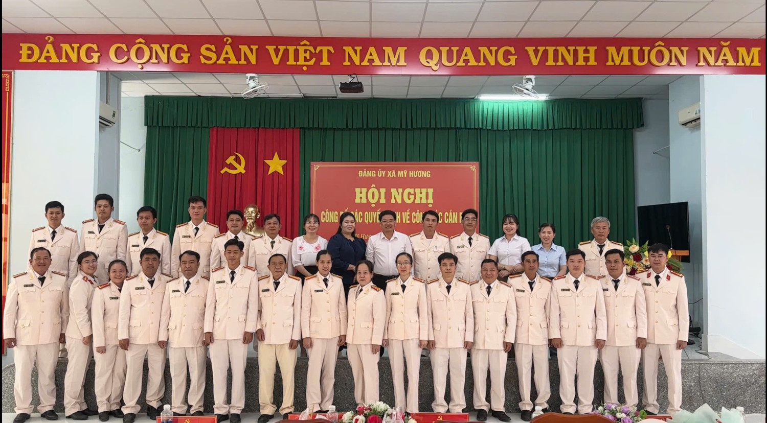 Tại Hội nghị, đại diện Ban xây dựng Đảng công bố Quyết định của Đảng ủy xã Mỹ Hương về việc thành lập Đảng bộ Công an xã trên cơ sở nâng lên từ Chi bộ Công an xã. Theo Quyết định, Đảng bộ Công an xã Mỹ Hương có 05 chi bộ trực thuộc với 52 đảng viên (100% đảng viên chính thức). Ban Chấp hành Đảng bộ gồm 11 đồng chí, Ban Thường vụ gồm 03 đồng chí. Đồng chí Trung tá Nguyễn Thanh Phong, Trưởng Công an xã được chỉ định giữ chức Bí thư Đảng ủy; đồng chí Trung tá Lý Trường Sơn, Phó Trưởng Công an xã giữ chức Phó Bí thư Đảng ủy, Chủ nhiệm Ủy ban kiểm tra Đảng ủy.