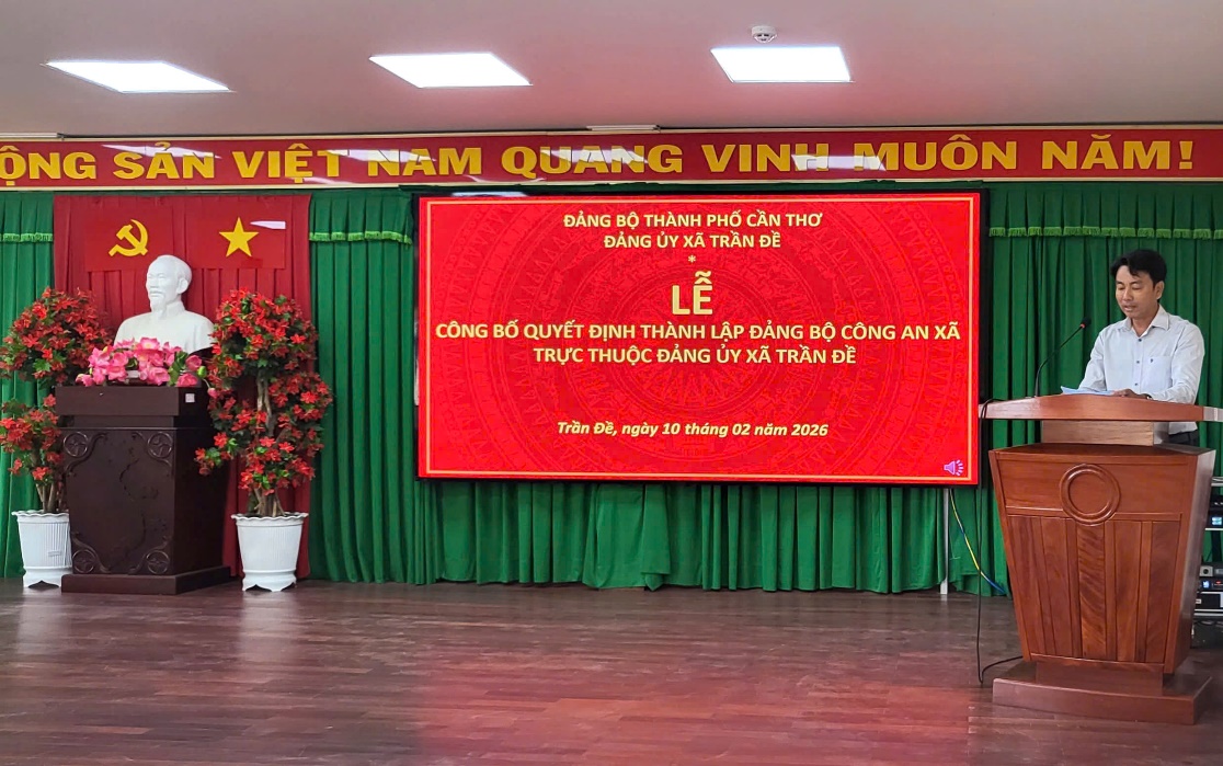 Ngày 10/02/2026, Đảng ủy xã Trần Đề long trọng tổ chức Lễ công bố Quyết định thành lập Đảng bộ Công an xã. Đồng chí Hồ Quang Đại, Phó Bí thư Đảng ủy, Chủ tịch Ủy ban nhân dân xã chủ trì buổi Lễ. Tham dự buổi Lễ có đại diện lãnh đạo Ban Xây dựng Đảng, các ban, ngành, đoàn thể xã cùng toàn thể cán bộ, đảng viên Công an xã.