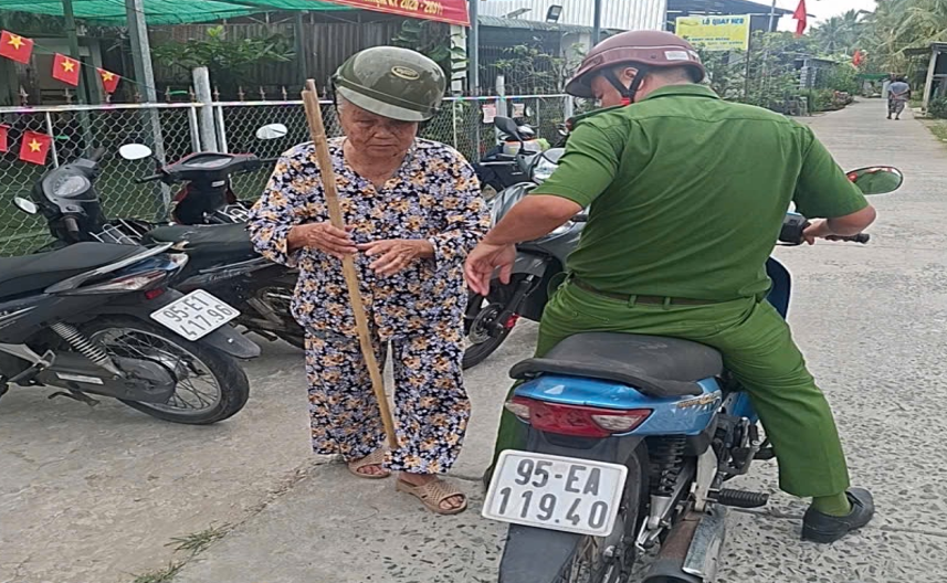 Hình ảnh lực lượng Công an xã hỗ trợ người dân đi bầu cử