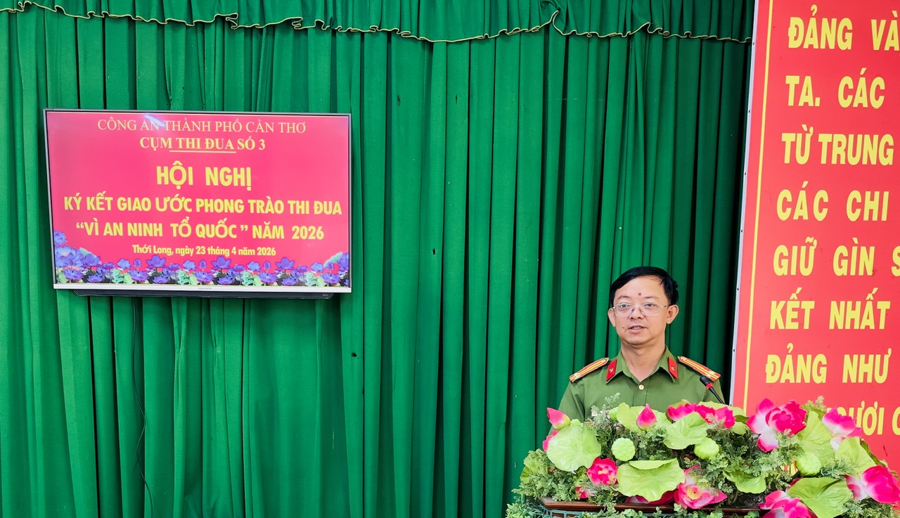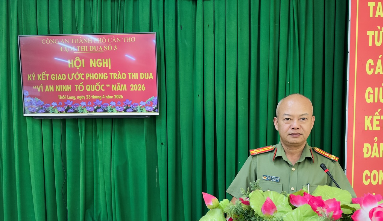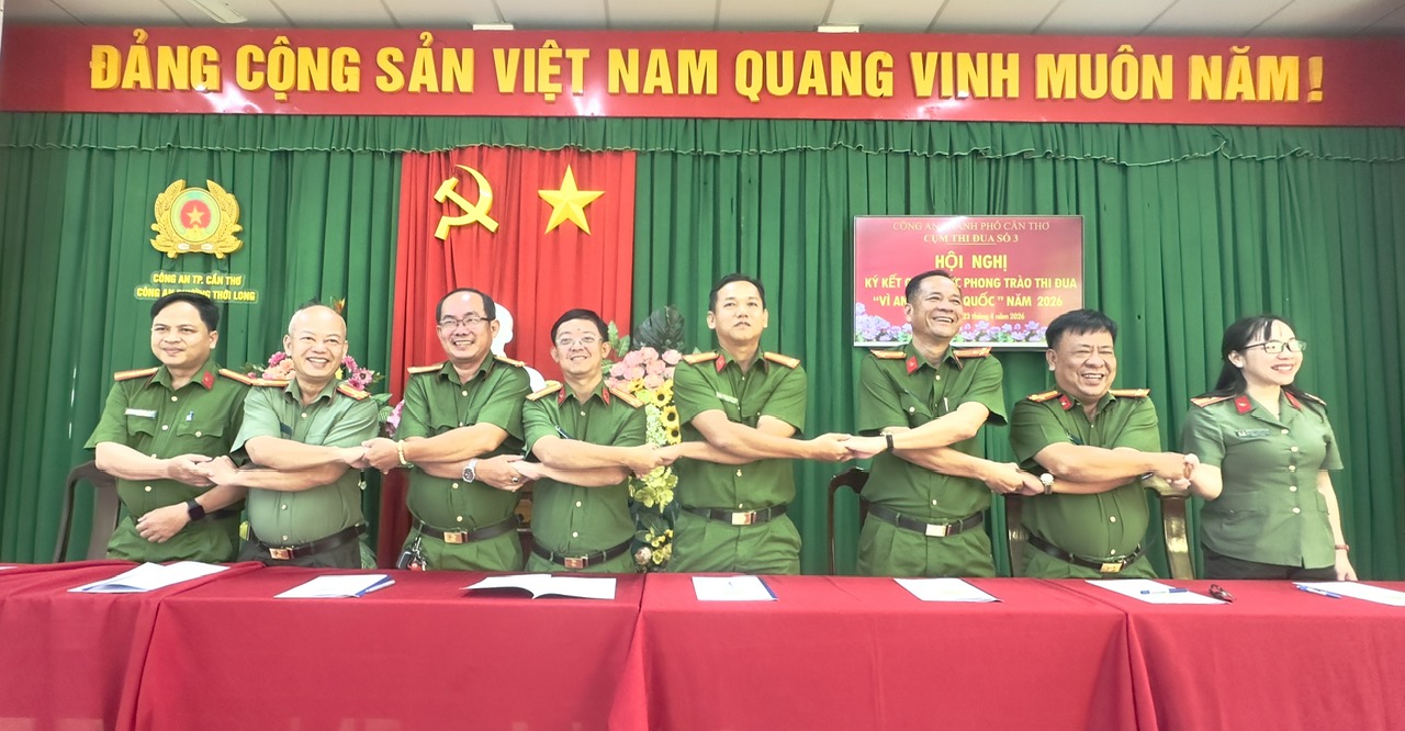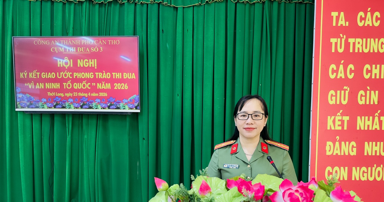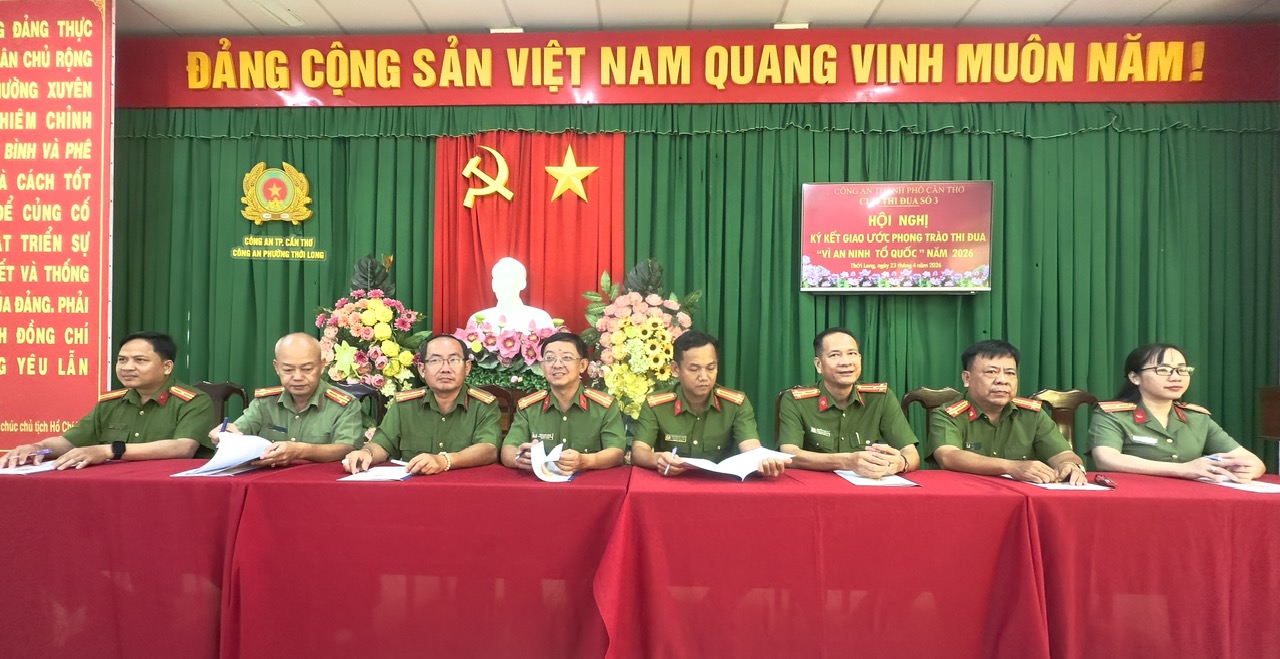 Sáng ngày 23/4/2026, tại trụ sở Công an Phường Thới Long, thành phố Cần Thơ, Cụm thi đua số 3 Công an xã, phường đã tổ chức Hội nghị ký kết giao ước phong trào thi đua “Vì an ninh Tổ quốc” năm 2026. Đến tham dự, hướng dẫn Hội nghị có đại diện Đội thi đua – khen thưởng, Phòng PX03 Công an thành phố Cần Thơ; đại diện Ban Chỉ huy, Tổ trưởng Tổ Tổng hợp của 8 đơn vị thuộc Cụm thi đua gồm: Công an các xã Thới Hưng, xã Trung Hưng, xã Đông Thuận, xã Cờ Đỏ, xã Đông Hiệp, Công an phường Ô Môn, phường Thuận Hưng và đơn vị Cụm trưởng Công an phường Thới Long.