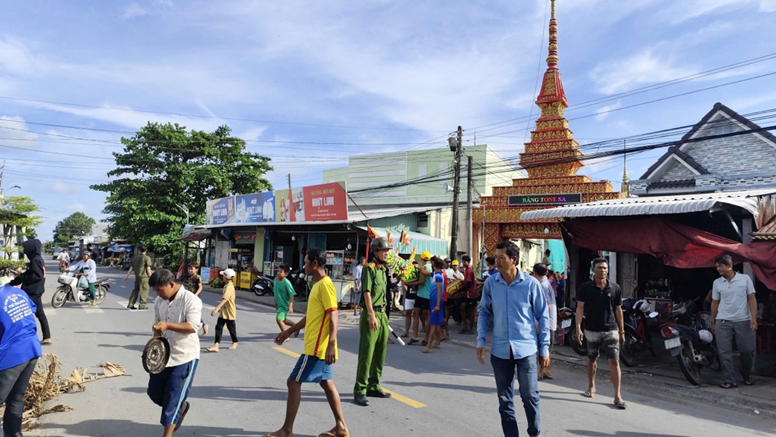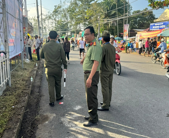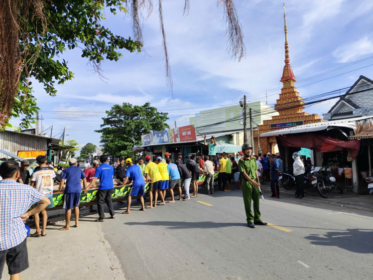 Lực lượng Công an xã Tài Văn tham gia bảo vệ an ninh, trật tự tại Lễ hội Óoc-Om-Bóc – Đua ghe Ngo