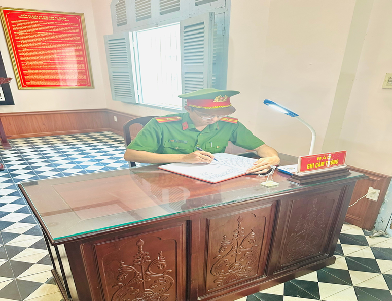 Thiếu tá Trần Thanh Bình, Ủy viên Ban Chấp hành Đảng bộ, Phó Trưởng Công an phường An Bình ghi cảm tưởng