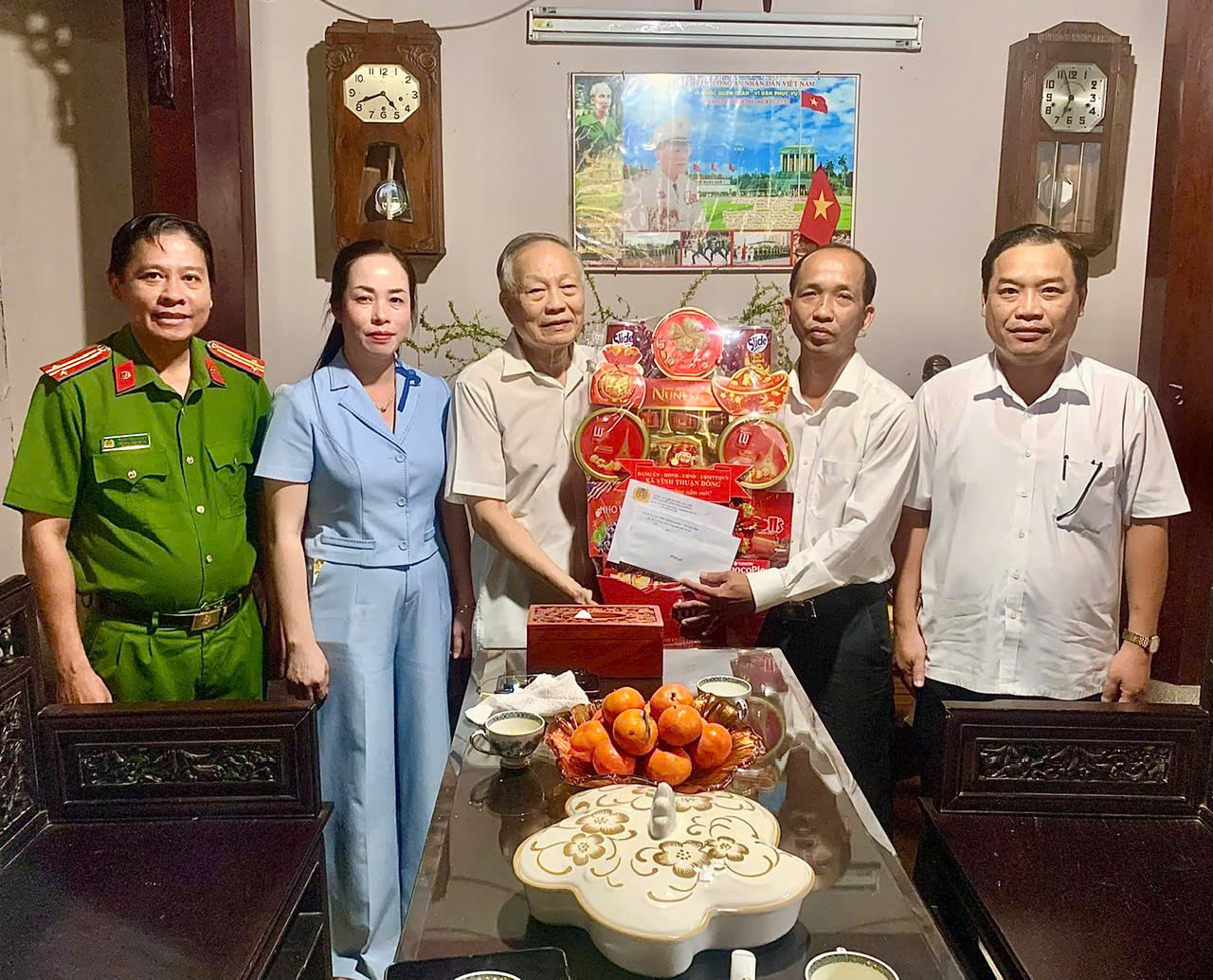 Trong không khí ấm áp những ngày giáp Tết Nguyên đán năm 2026, Đoàn Lãnh đạo xã Vĩnh Thuận Đông do đồng chí Nguyễn Huy Cường, Bí thư Đảng ủy xã làm Trưởng đoàn; cùng tham gia có đồng chí Nguyễn Minh Vương, Phó Bí thư Thường trực Đảng ủy, Chủ tịch Hội đồng nhân dân xã; đồng chí Đào Thị Loan Anh, Phó Bí thư Đảng ủy, Chủ tịch Ủy ban nhân dân xã; đồng chí Phạm Trung Kiên, Ủy viên Ban Thường vụ Đảng ủy, Trưởng Công an xã; đại diện Lãnh đạo Văn phòng Đảng ủy, Văn phòng Hội đồng nhân dân và Ủy ban nhân dân xã đã đến thăm, chúc Tết các đồng chí nguyên Lãnh đạo xã qua các nhiệm kỳ và gia đình.