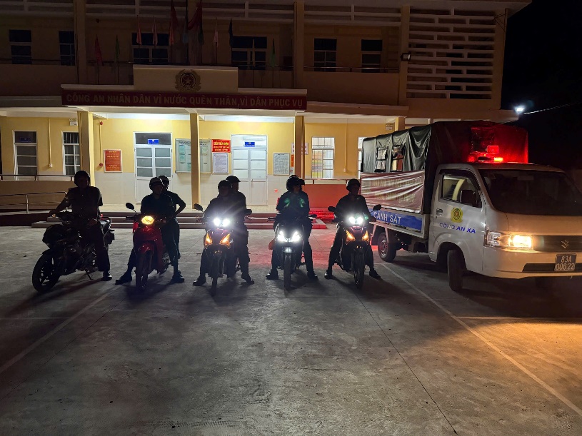 Công an xã tiến hành tuần tra, đảm bảo an ninh trật tự ban đêm