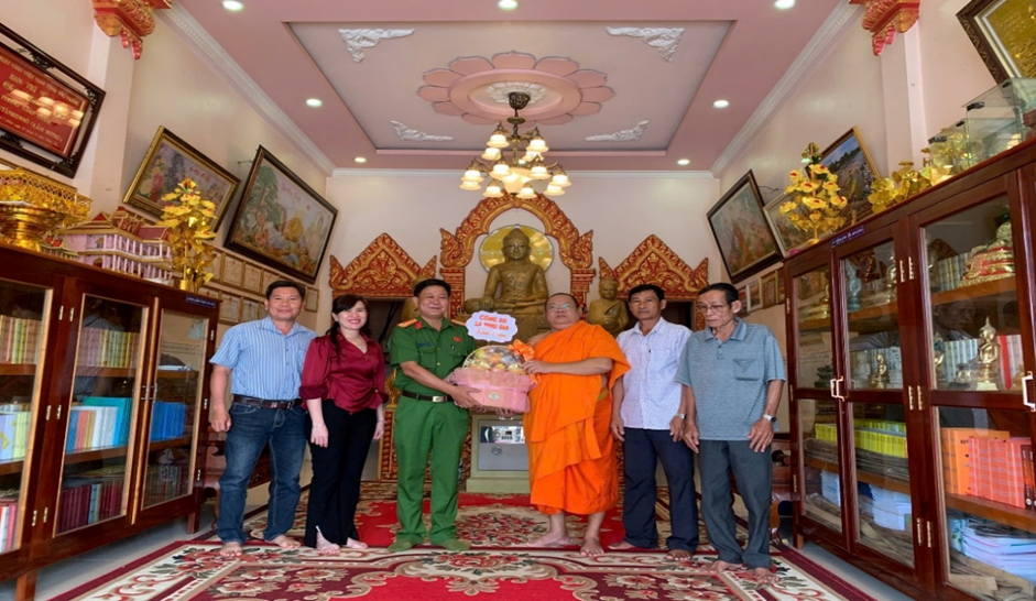 Chỉ huy Công an xã Nhu Gia thăm hỏi, chúc mừng lễ Sene Dolta tại chùa Nhu Gia