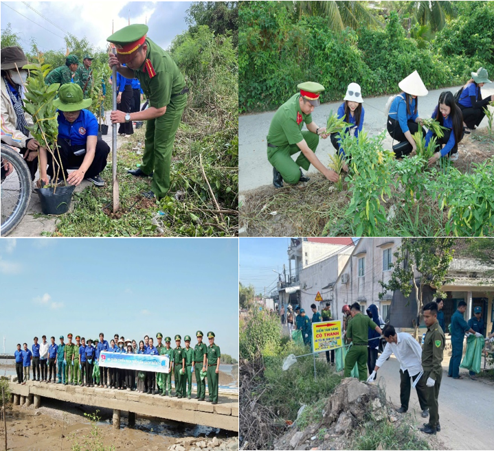 Chi đoàn Công an xã đã phối hợp đoàn viên, thanh niên thực hiện "Ngày Chủ nhật xanh",“Hãy làm sạch biển”, phát quang, dọn vệ sinh lộ giao thông nông thôn; trồng hoa tạo cảnh quan môi trường xanh, sạch, đẹp