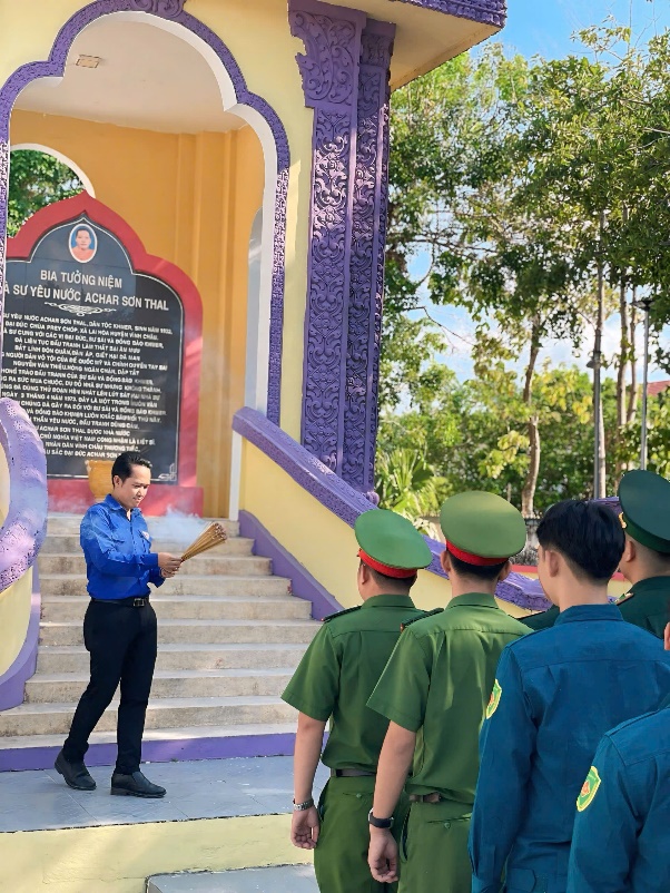 Chi đoàn Công an xã đã phối hợp đoàn viên, thanh niên dâng hương tại bia tưởng niệm nhà sư yêu nước AChar Sơn Thal