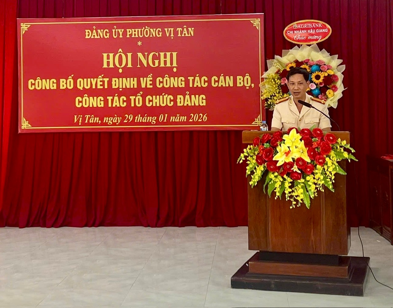 Nhằm đánh dấu bước chuyển quan trọng trong công tác xây dựng Đảng, củng cố tổ chức cơ sở Đảng trong lực lượng Công an ở địa bàn cơ sở, ngày 29/01/2026, Đảng ủy phường Vị Tân long trọng tổ chức Hội nghị công bố các quyết định về công tác cán bộ và công tác tổ chức Đảng, trong đó công bố quyết định thành lập Đảng bộ cơ sở Công an phường Vị Tân.