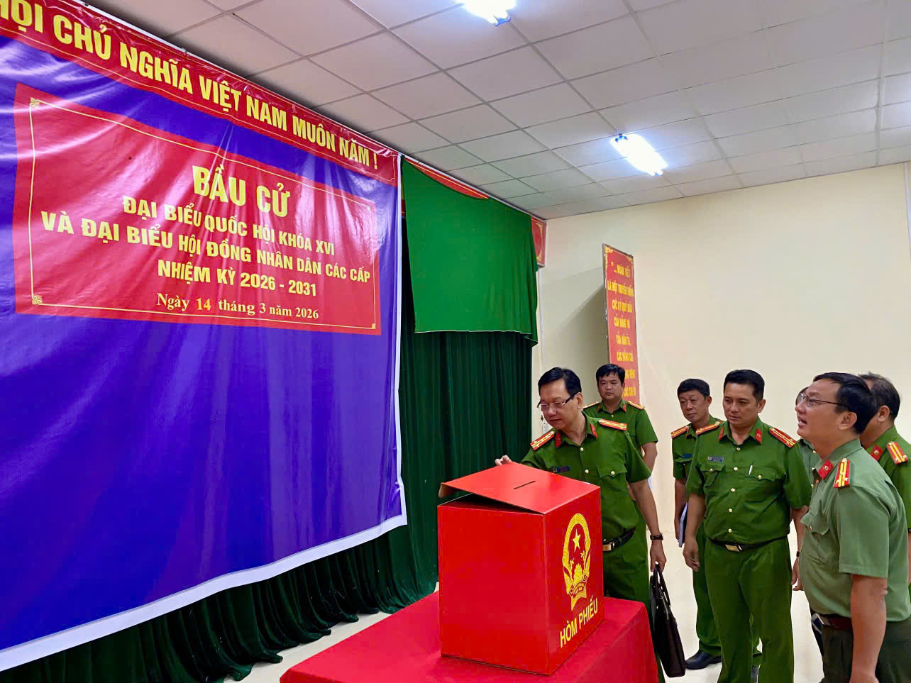 Đoàn công tác Công an thành phố kiểm tra công tác bảo đảm an ninh, trật tự tại khu vực bỏ phiếu số 27 (xã Trung Hưng).