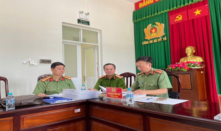 Đại diện Công an phường báo cáo kết quả thực hiện; Tổ trưởng Tổ kiểm tra số 1 kiểm tra hồ sơ, tài liệu của đơn vị