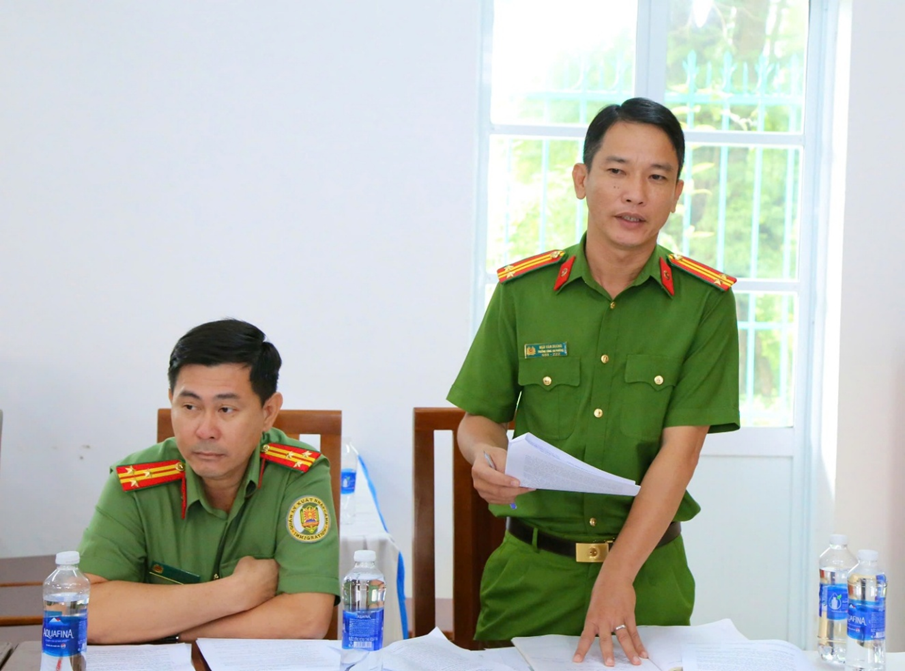 Trung tá Ngô Văn Dương, Trưởng Công an phường Vĩnh Phước báo cáo kết quả các mặt công tác