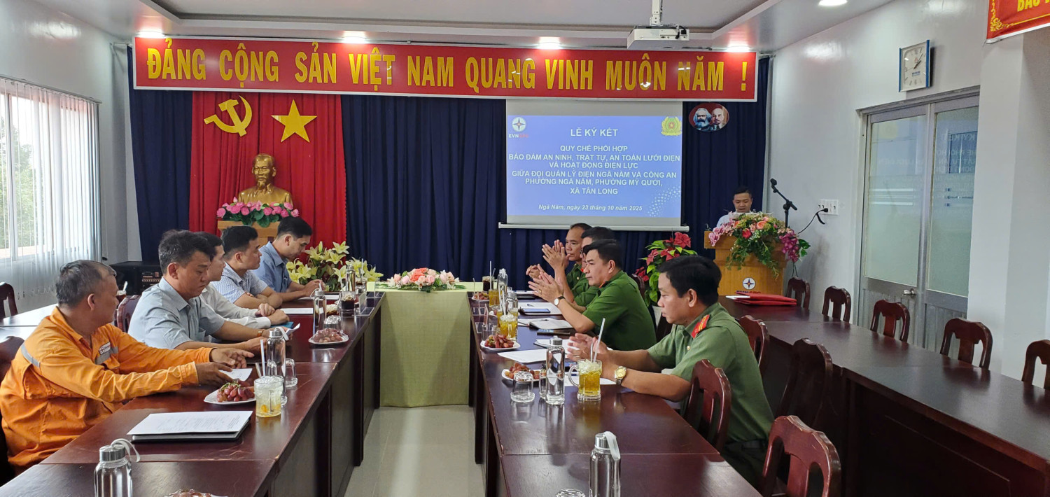 Ngày 23/10/2025, tại Đội quản lý điện Ngã Năm, Điện lực thành phố Cần Thơ, đã diễn ra Hội nghị tổng kết và ký kết Quy chế phối hợp giữa Công an các phường, xã Ngã Năm, Mỹ Quới, Tân Long và Đội quản lý điện Ngã Năm.