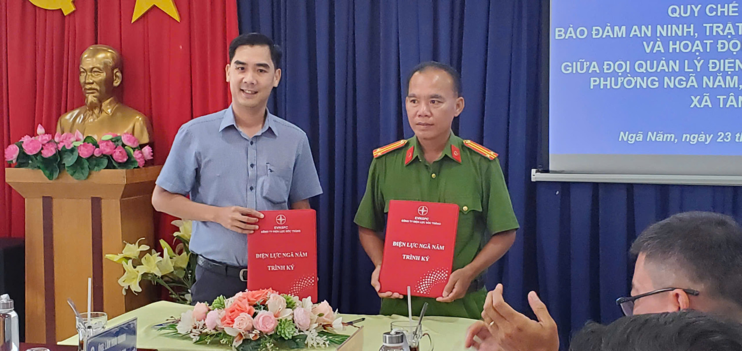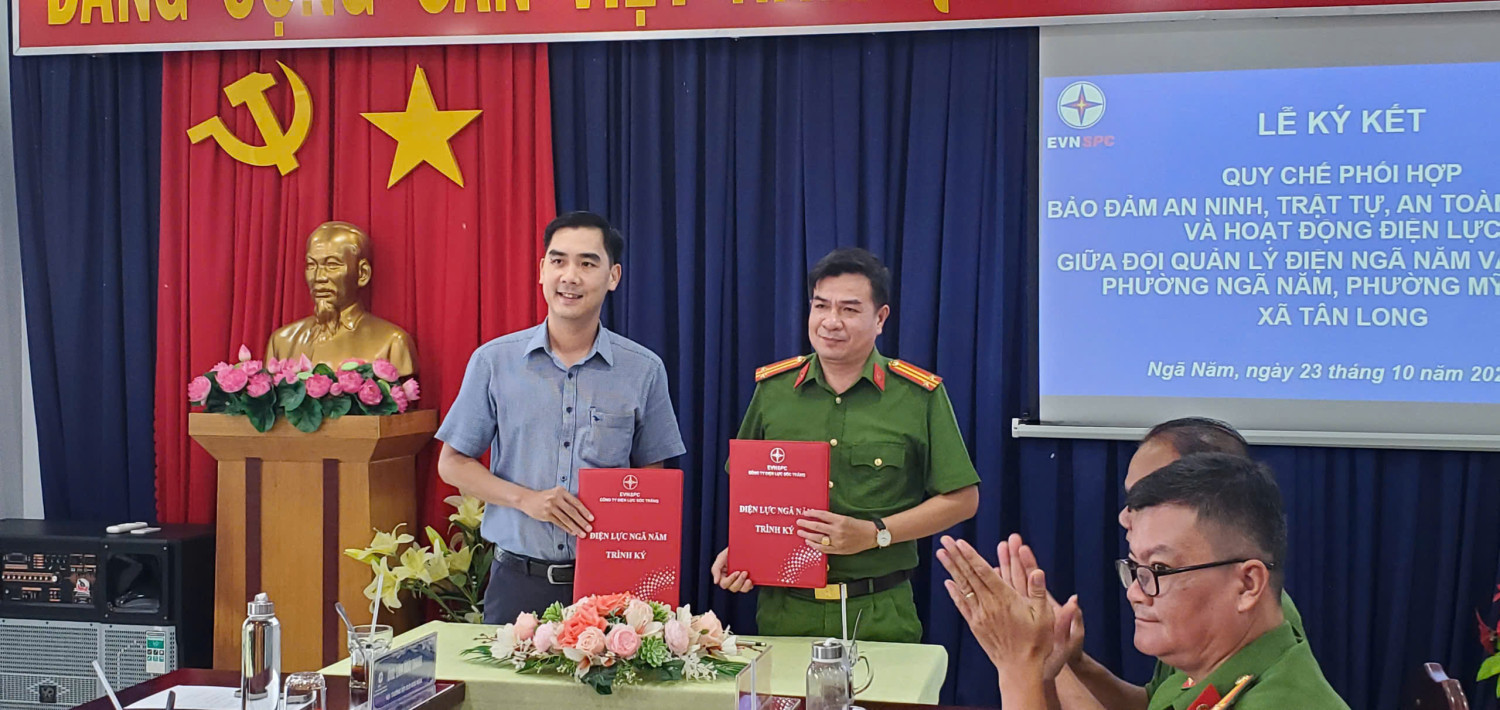 Tham dự lễ kýkết, về phía Điện lực Ngã Năm có đồng chí Lâm Hoài Thanh, Đội trưởng; đồng chí Võ Văn Pho, Đội phó; cùng tập thể cán bộ Đội quản lý điện Ngã Năm. Về phía Công an, có Trung tá Lê Mộng Tân, Phó Trưởng Công an phường Ngã Năm; Trung tá Nguyễn Văn Bá, Phó Trưởng Công an phường Mỹ Quới; Trung tá Hà Minh Đảm, Phó Trưởng Công an xã Tân Long; cùng các Tổ trưởng tổ nghiệp vụ Công an xã, phường. Trên tinh thần tổng kết Quy chế phối hợp đảm bảo an ninh, trật tự và an toàn lưới điện giai đoạn 2023–2025, hai ngành đã đạt được nhiều kết quả quan trọng, nhất là trong bảo vệ hành lang an toàn lưới điện, phòng ngừa trộm cắp vật tư, thiết bị ngành điện, khắc phục hậu quả thiên tai và kịp thời trao đổi thông tin. Kết quả này nối tiếp thành công của giai đoạn trước, đồng thời khẳng định sự cần thiết của việc ký kết quy chế mới, phù hợp với mô hình chính quyền địa phương hai cấp.