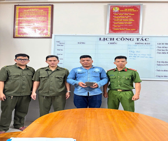 Cán bộ Công an xã Lương Tâm trao trả điện thoại iPhone 14 Pro Max cho người dân bị đánh rơi, góp phần lan tỏa tinh thần vì Nhân dân phục vụ.