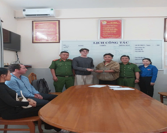 Công an phường Phước Thới tổ chức xác minh và trao trả số tiền hơn 34 triệu đồng cho khách du lịch (quốc tịch Canada).