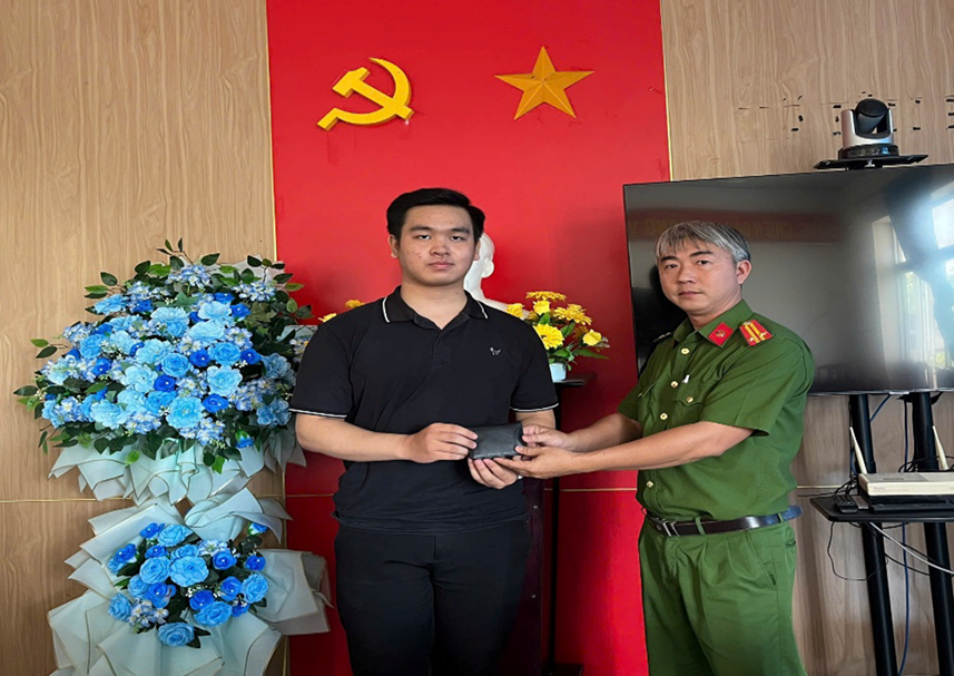Cán bộ Công an phường Long Bình trả lại tài sản bị đánh rơi cho công dân.