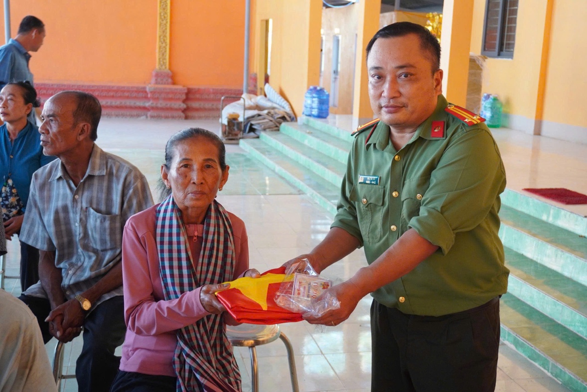 Những lá cờ đỏ sao vàng được trao tận tay Ban Quản trị chùa và bà con phật tử không chỉ là biểu tượng thiêng liêng của độc lập, chủ quyền và toàn vẹn lãnh thổ, mà còn thể hiện sự gắn bó, tin cậy giữa chính quyền với Nhân dân, giữa lực lượng Công an với đồng bào tôn giáo. Hình ảnh Quốc kỳ tung bay trong khuôn viên chùa góp phần tạo khí thế thi đua sôi nổi, lan tỏa tinh thần “sống tốt đời, đẹp đạo”, đồng hành cùng dân tộc.