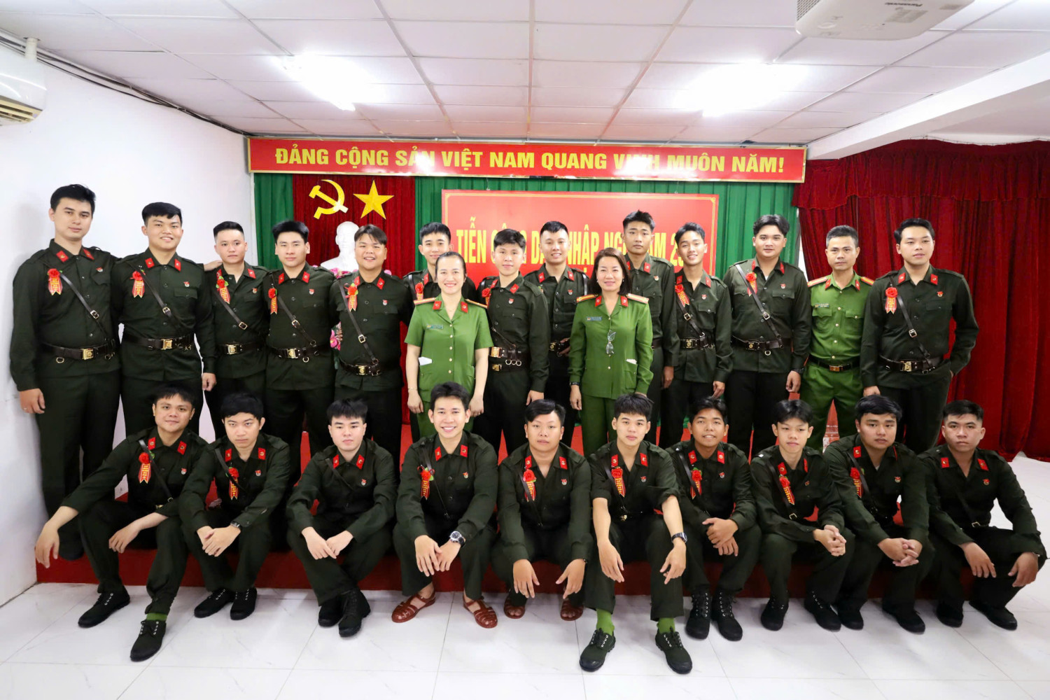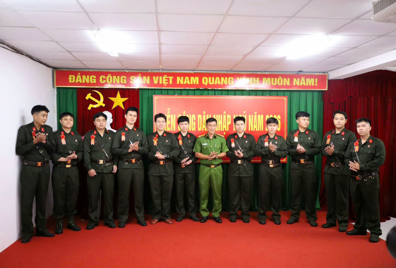 Trung tá Trần Sơn Lam, Trưởng Công an phường Cái Khế và các tân binh tại Lễ giao, nhận quân năm 2026.