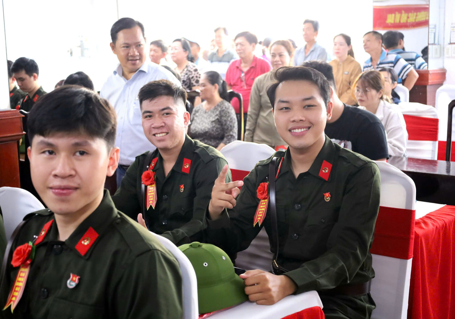 Các tân binh mang theo quyết tâm của tuổi trẻ lên đường nhập ngũ.