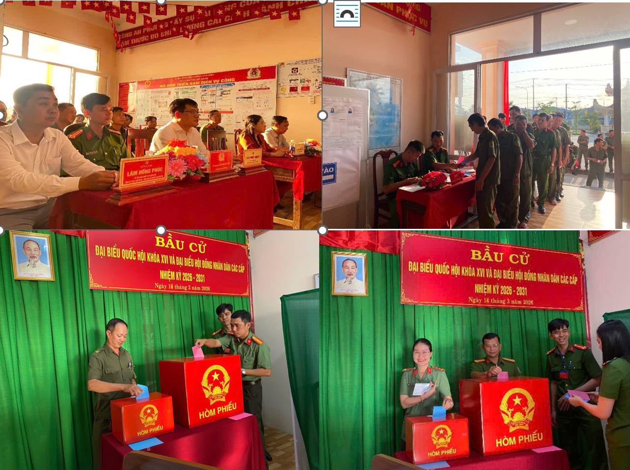 Hòa trong không khí phấn khởi của Nhân dân cả nước hướng tới ngày bầu cử đại biểu Quốc hội khóa XVI và đại biểu Hội đồng nhân dân các cấp nhiệm kỳ 2026 - 2031, sáng ngày 14/3/2026, 103 Công an các xã, phường trên địa bàn thành phố Cần Thơ đã tổ chức cho cán bộ, chiến sĩ và lực lượng tham gia bảo vệ an ninh, trật tự ở cơ sở tham gia bỏ phiếu bầu cử.