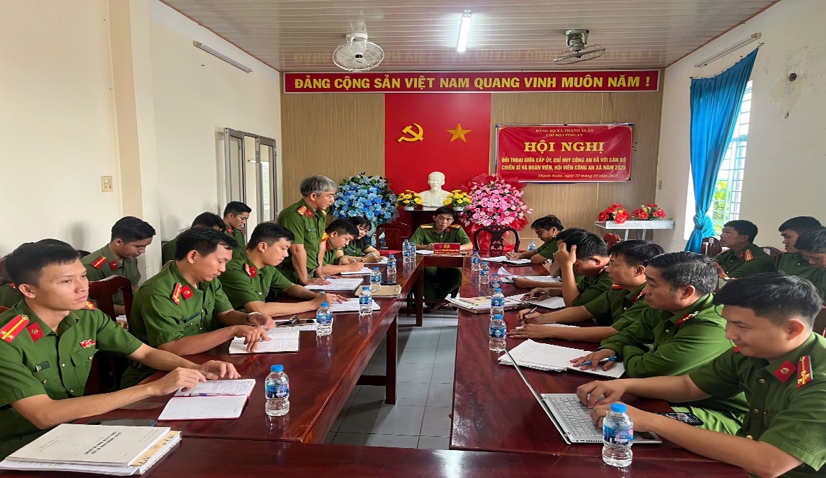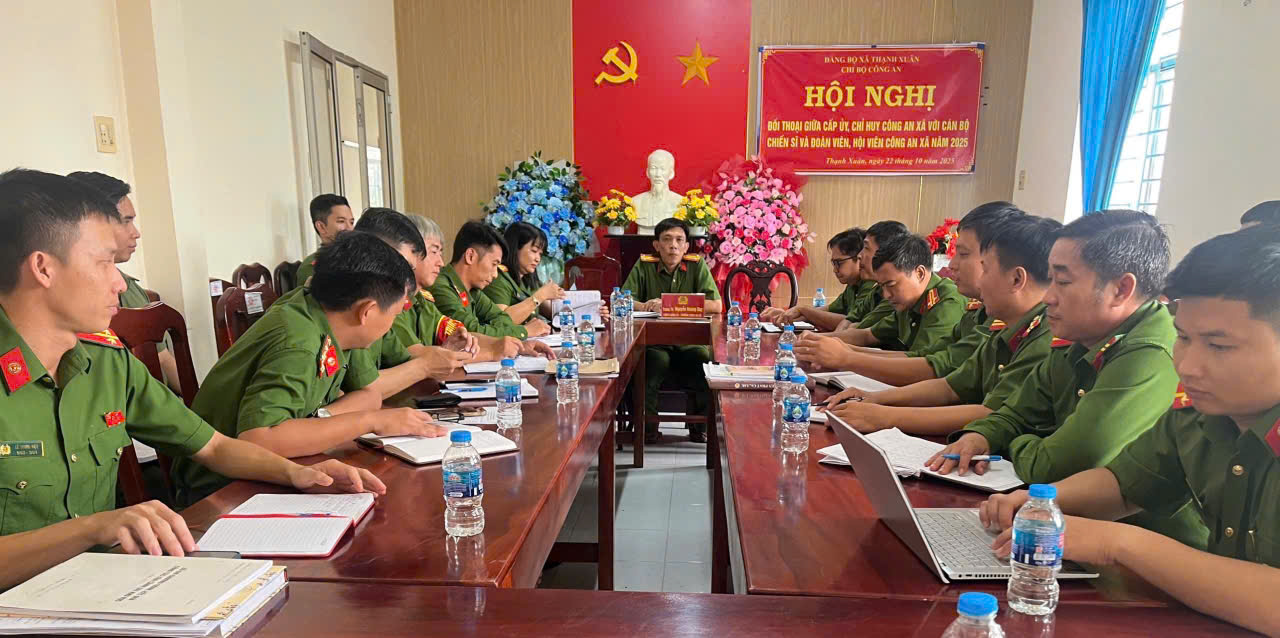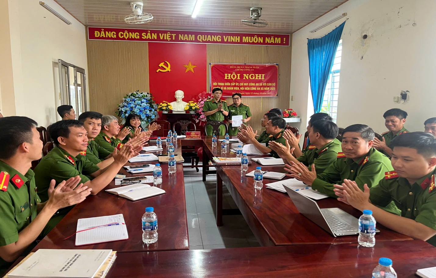 Ngày 22/10/2025, Đảng ủy, Ban Chỉ huy Công an xã Thạnh Xuân tổ chức Hội nghị đối thoại với cán bộ, chiến sĩ Công an xã năm 2025. Hội nghị có sự tham dự của Cấp ủy, Ban Chỉ huy và toàn thể cán bộ, chiến sĩ trong đơn vị.
