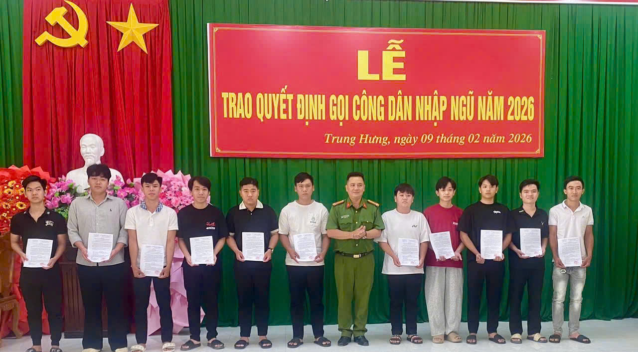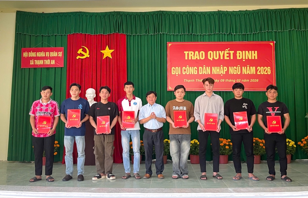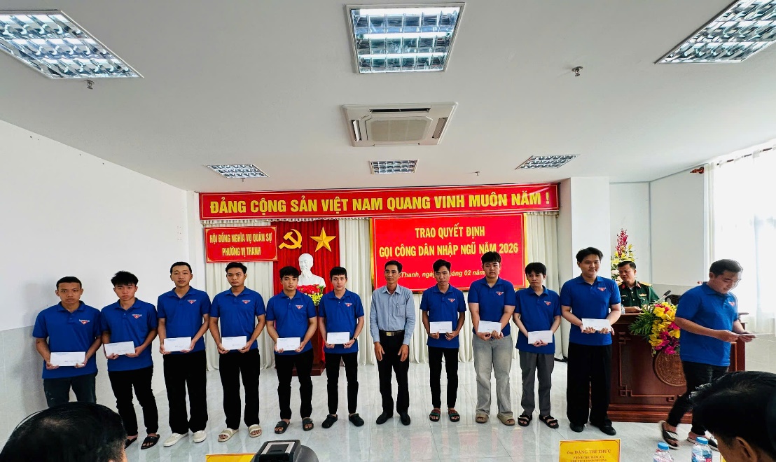 Thực hiện Kế hoạch tuyển chọn, gọi công dân nhập ngũ và thực hiện nghĩa vụ tham gia Công an nhân dân năm 2026 của thành phố Cần Thơ, từ đầu tháng 02/2026, Công an các xã, phường trên địa bàn đã chủ động tham mưu cấp ủy, chính quyền địa phương tổ chức Lễ trao Quyết định gọi công dân nhập ngũ bảo đảm trang trọng, đúng quy định, hoàn thành và vượt chỉ tiêu được giao. Kết quả đạt được tiếp tục khẳng định vai trò nòng cốt, trung tâm của lực lượng Công an cơ sở trong công tác tuyển quân, góp phần xây dựng lực lượng vũ trang chính quy, tinh nhuệ, đáp ứng yêu cầu nhiệm vụ bảo đảm an ninh, trật tự trong tình hình mới.