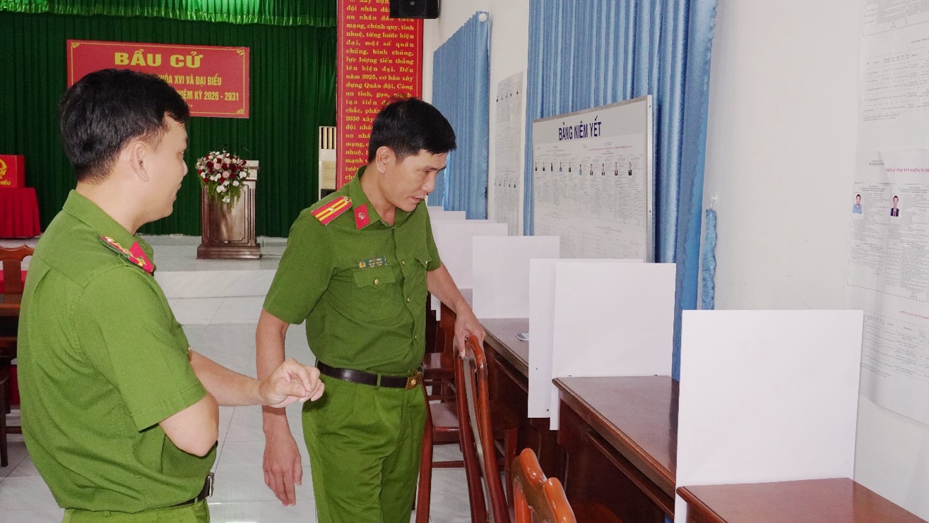 Cán bộ, chiến sĩ kiểm tra, rà soát hệ thống cơ sở vật chất, khu vực bỏ phiếu