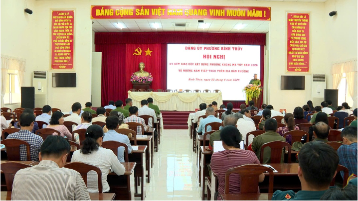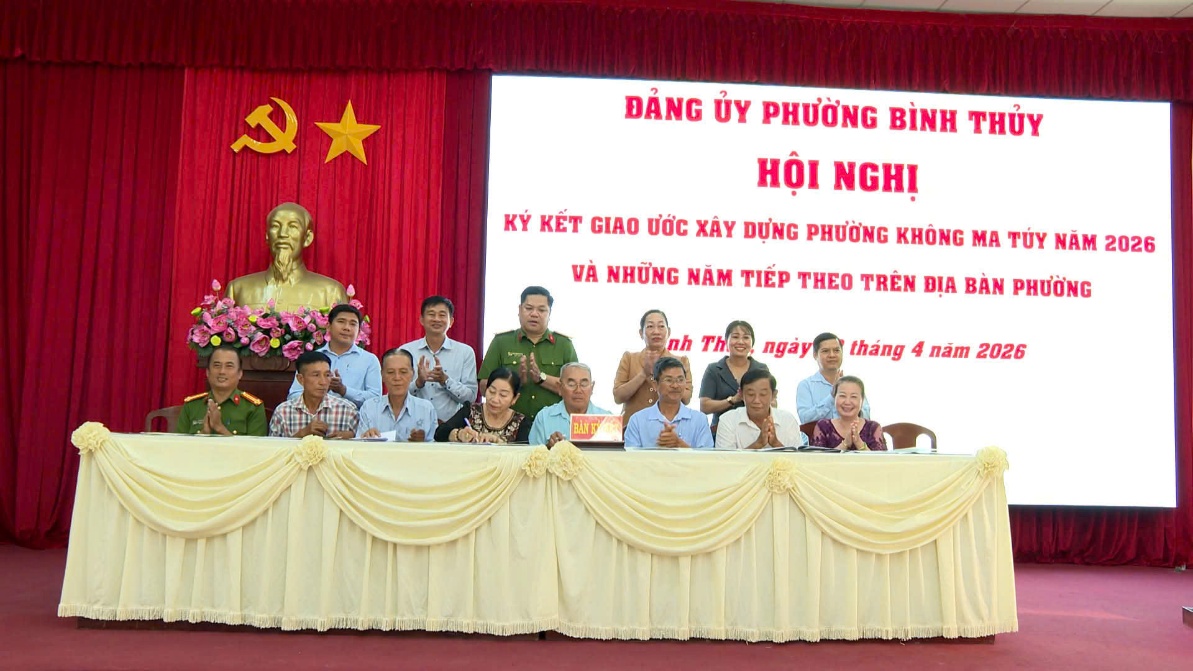 Chiều 22/4, Đảng ủy phường Bình Thủy, TP Cần Thơ tổ chức Hội nghị ký kết giao ước xây dựng phường không ma túy năm 2026 và những năm tiếp theo. Tại hội nghị, các đại biểu được quán triệt Nghị quyết, Chỉ thị của Đảng về tăng cường lãnh đạo công tác phòng, chống và kiểm soát ma túy; đồng thời triển khai Kế hoạch số 28-KH/ĐU về xây dựng địa bàn không ma túy.