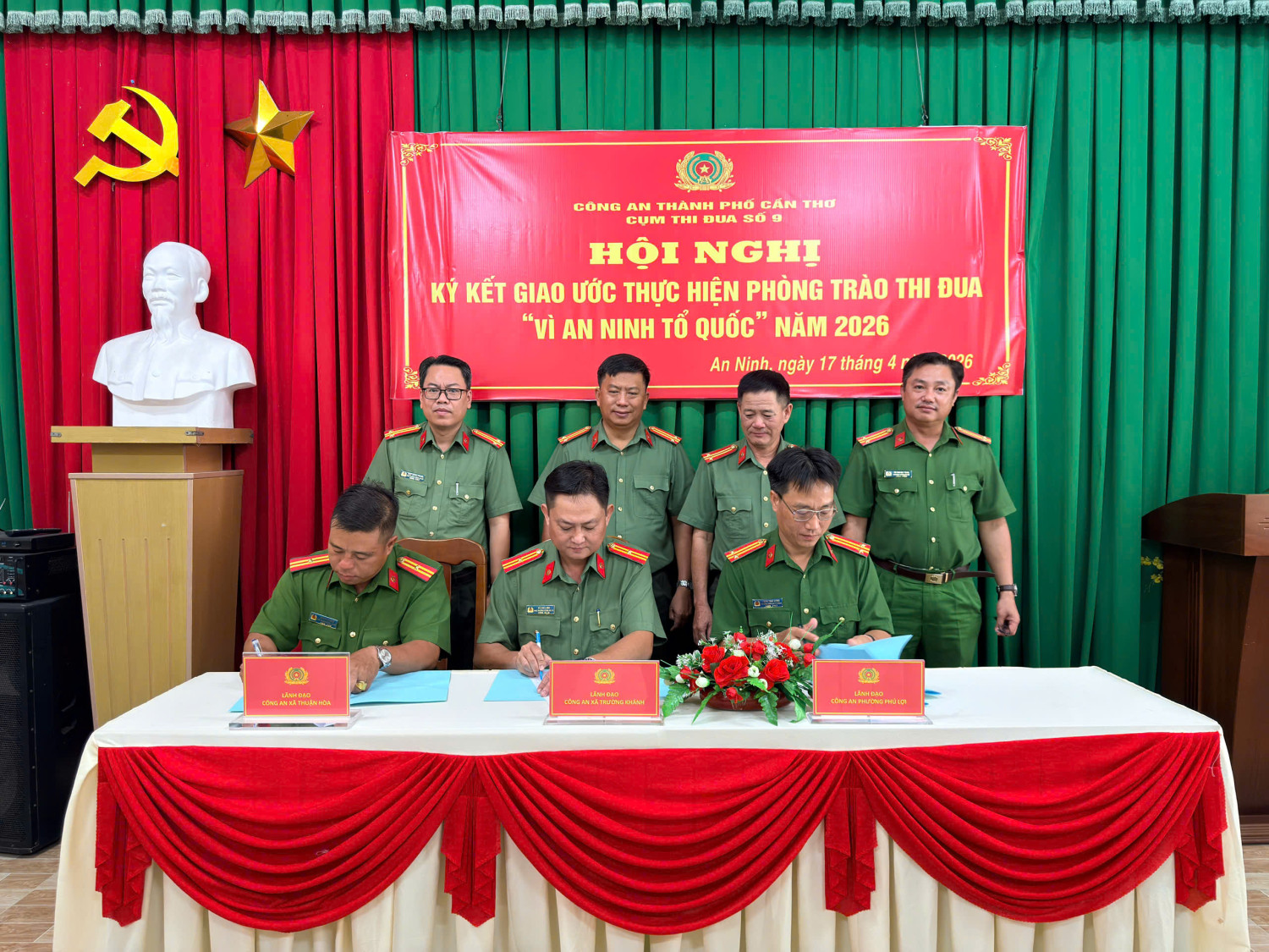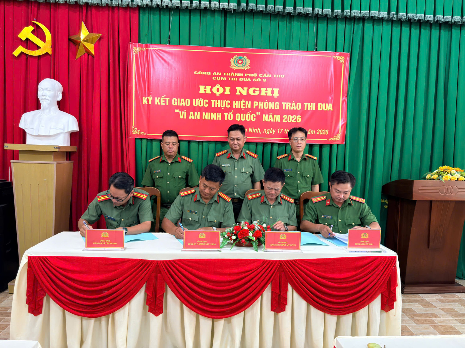 Thực hiện các văn bản chỉ đạo của Bộ Công an và Công an thành phố về công tác thi đua, khen thưởng, ngày 17/4/2026, Cụm thi đua số 9 Công an thành phố tổ chức Hội nghị ký kết giao ước thực hiện phong trào thi đua “Vì an ninh Tổ quốc” năm 2026.