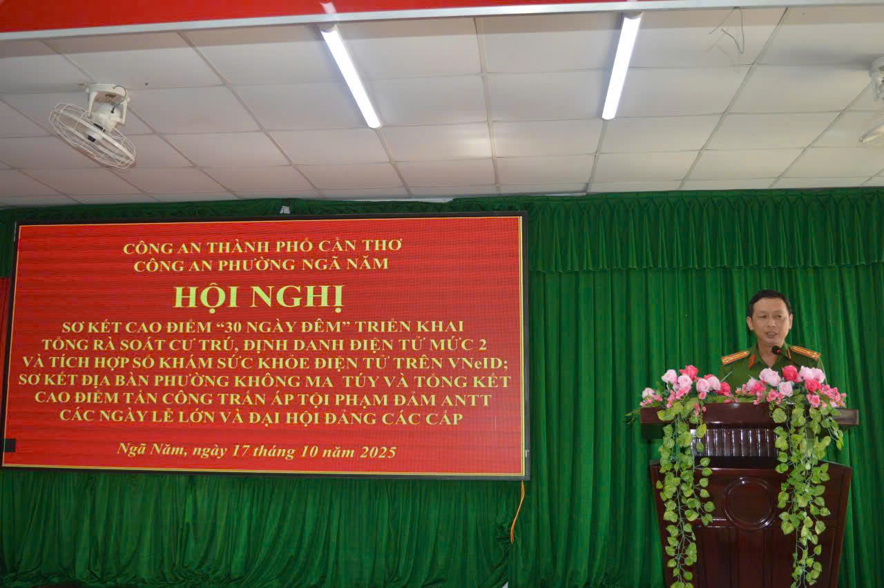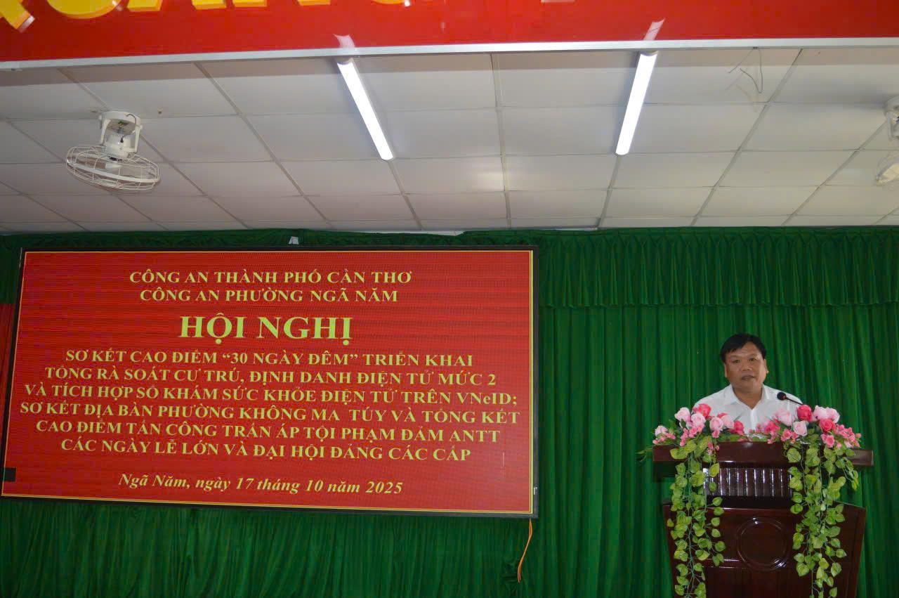 Ngày 17/10/2025, Công an phường Ngã Năm tổ chức Hội nghị sơ kết cao điểm “30 ngày đêm” triển khai tổng rà soát cư trú, định danh điện tử mức 2 và tích hợp sổ khám sức khỏe điện tử trên VNeID; sơ kết địa bàn phường không ma túy và tổng kết cao điểm tấn công, trấn áp tội phạm bảo đảm an ninh, trật tự các ngày lễ lớn và Đại hội Đảng các cấp.