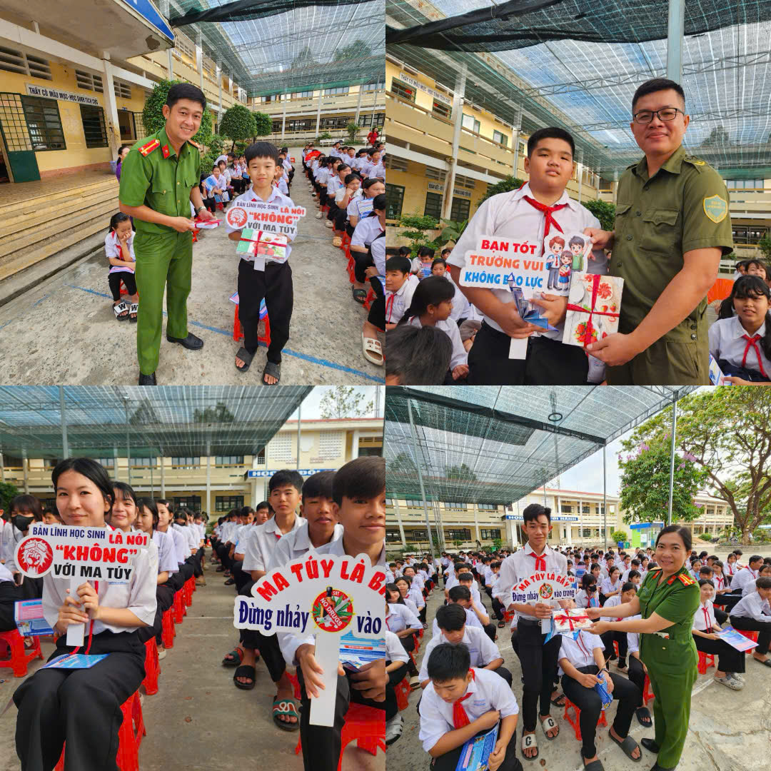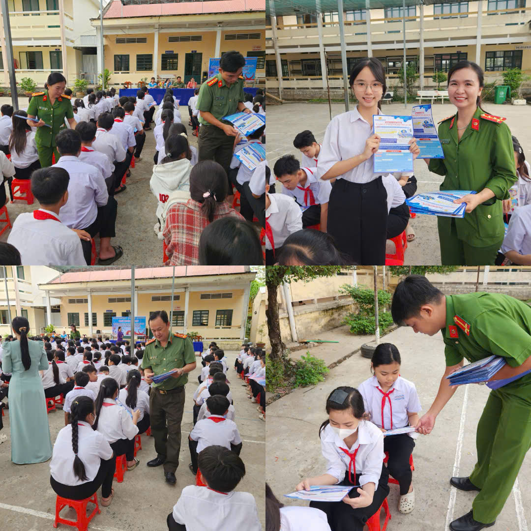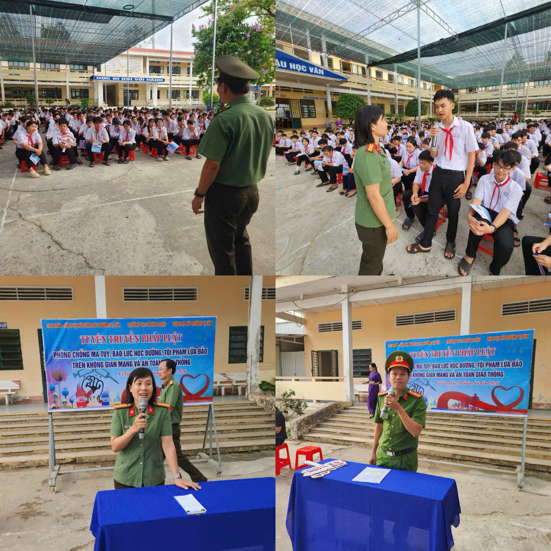 Cùng ngày, Công an phường Vị Tân đã phối hợp với Đoàn thanh niên, Hội phụ nữ phường và Trường THCS Hoàng Diệu tổ chức tuyên truyền pháp luật cho học sinh về phòng chống ma túy, bạo lực học đường, tội phạm lừa đảo trên không gian mạng và an toàn giao thông. Tại buổi tuyên truyền, báo cáo viên đã phân tích, làm rõ hình thức bạo lực học đường (bạo lực về thể chất, hành vi, lời nói…); hậu quả gây ra đối với học sinh và bản thân các cá nhân thực hiện hành vi bạo lực; các biện pháp phòng chống bạo lực đối với học sinh, nhà trường, các cơ quan quản lý giáo dục, đối với giáo viên, gia đình học sinh. Thông tin tình hình tệ nạn ma túy trong thời gian gần đây, làm rõ các loại hình ma túy, thủ đoạn dụ dỗ của các đối tượng buôn bán ma túy; hậu quả và những việc cần làm để ngăn chặn và phòng chống ma túy. Các hình thức lừa đảo trực tuyến phổ biến trên không gian mạng (giả mạo người thân, bạn bè; các chương trình khuyến mãi, trúng thưởng; trò chơi trực tuyến, chiếm đoạt tài khoản game; tham gia nhóm kín, diễn đàn không an toàn…); biện pháp phòng, chống lừa đảo trên không gian mạng; hành động cần thực hiện ngay khi phát hiện lừa đảo; văn hóa ứng xử và xử lý thông tin khi tham gia các trang mạng xã hội. Quy tắc ứng xử khi tham gia giao thông, các quy định cơ bản về điều khiển phương tiện, tuyên truyền cho người thân, gia đình cùng tham gia để bảo đảm an toàn giao thông trên địa bàn. Nắm bắt được tâm lý và nhu cầu độ tuổi của các em học sinh, đơn vị đã chuẩn bị các tài liệu tuyên truyền sinh động, đồng thời báo cáo viên Công an phường Vị Tân đã truyền tải các nội dung gần gũi, thực tế đến các em, kết hợp với việc tổ chức trò chơi thú vị, giải đáp câu hỏi và tặng quà đã tạo được tinh thần phấn khởi, không khí vui tươi, thu hút được sự tham gia nhiệt tình của 702 em học sinh.