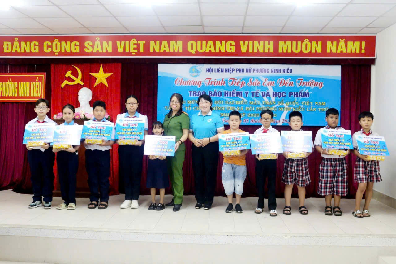 Phụ nữ Công an phường Ninh Kiều tặng quà cho trẻ em có hoàn cảnh khó khăn