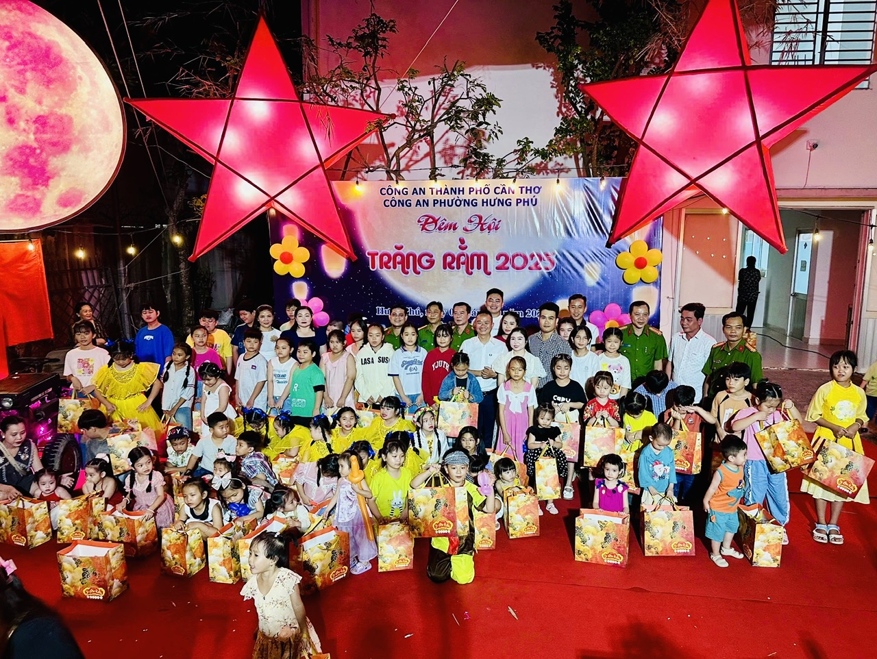 Tại phường Hưng Phú, Công an phường triển khai chương trình “Mẹ đỡ đầu – Tình thương cho em hậu Covid” gắn với “Đêm hội trăng rằm” năm 2025, chăm lo cho trẻ em có hoàn cảnh khó khăn. Tại chương trình, Ban Lãnh đạo Công an phường trao học bổng tiếng Anh đến năm 18 tuổi và hơn 220 phần quà Trung thu cho con em cán bộ, chiến sĩ và lực lượng an ninh trật tự cơ sở. Hoạt động ý nghĩa này lan tỏa tinh thần “Vì đàn em thân yêu”, góp phần giáo dục truyền thống, khơi dậy ý chí phấn đấu của thế hệ trẻ và mang đến một mùa Trung thu ấm áp, vui tươi.