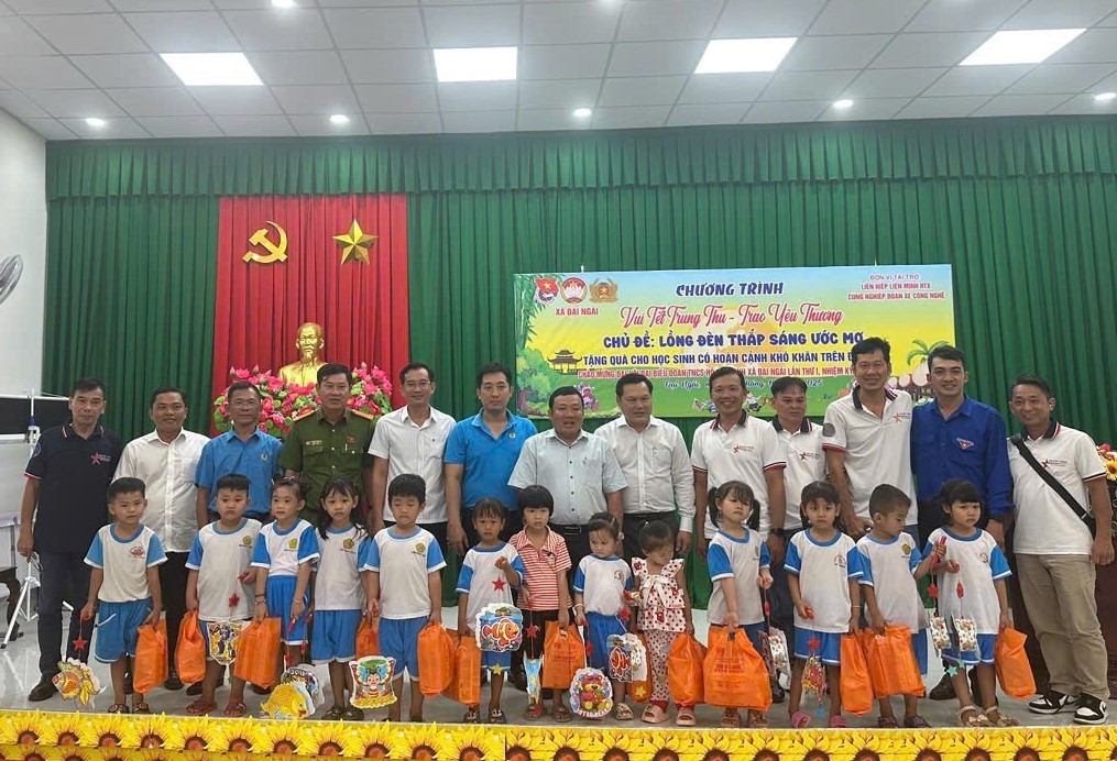 Tại xã Đại Ngãi, Công an xã phối hợp với Ủy ban Mặt trận Tổ quốc Việt Nam xã tổ chức phát quà 100 phần quà cho các em có hoàn cảnh khó khăn. Tại chương trình, đồng chí Nguyễn Minh Liêm, Phó Bí thư, Chủ tịch Ủy ban nhân dân xã Đại Ngãi đã đọc Thư chúc Tết Trung thu của Chủ tịch nước năm 2025 gửi đến các cháu thiếu niên, nhi đồng, gửi gắm tình cảm yêu thương, lời động viên, căn dặn các em thiếu nhi nỗ lực học tập, rèn luyện, phấn đấu trở thành con ngoan, trò giỏi, công dân có ích cho đất nước.