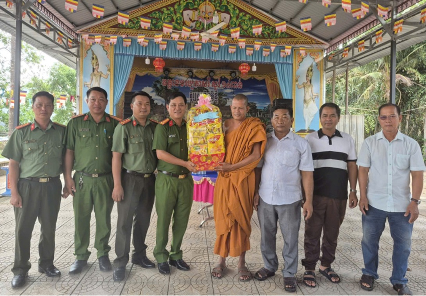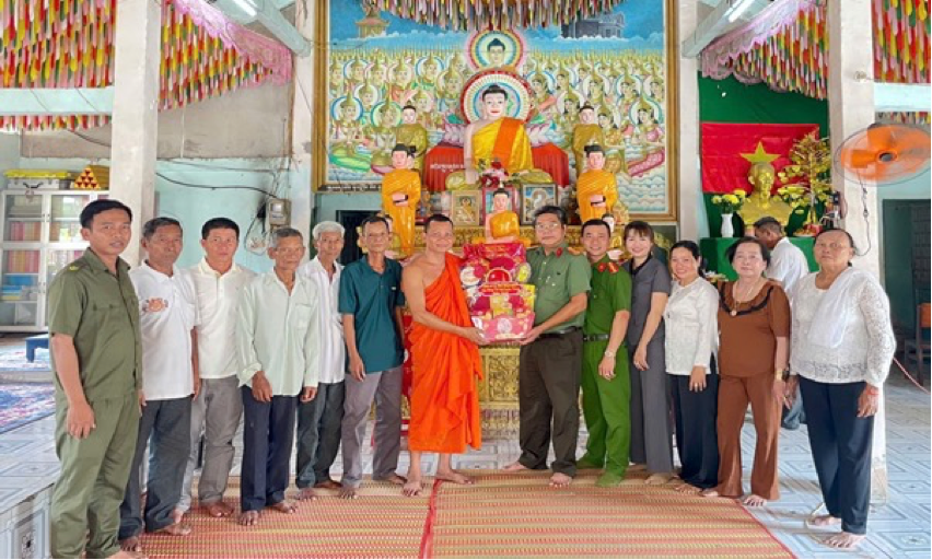 Nhân dịp này, Công an xã đã trao tặng nhiều phần quà ý nghĩa đến các cơ sở thờ tự và người có uy tín, thể hiện sự quan tâm của lực lượng Công an đối với đời sống tinh thần của đồng bào dân tộc Khmer; góp phần thắt chặt mối quan hệ đoàn kết, gắn bó giữa lực lượng Công an với Nhân dân.