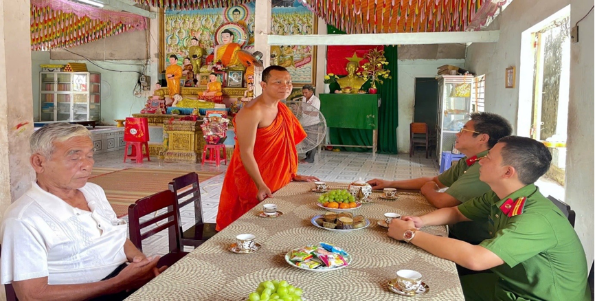 Bên cạnh đó, Công an xã cũng thông tin nhanh về tình hình an ninh, trật tự trên địa bàn; tuyên truyền, vận động các cơ sở thờ tự và người có uy tín tiếp tục phát huy vai trò nòng cốt trong công tác tuyên truyền, vận động đồng bào dân tộc Khmer nâng cao ý thức cảnh giác trước các loại tội phạm, nhất là tội phạm sử dụng công nghệ cao, tệ nạn xã hội; thực hiện tốt quy định về cư trú, phòng cháy, chữa cháy và giữ gìn an ninh, trật tự trong dịp lễ, Tết.