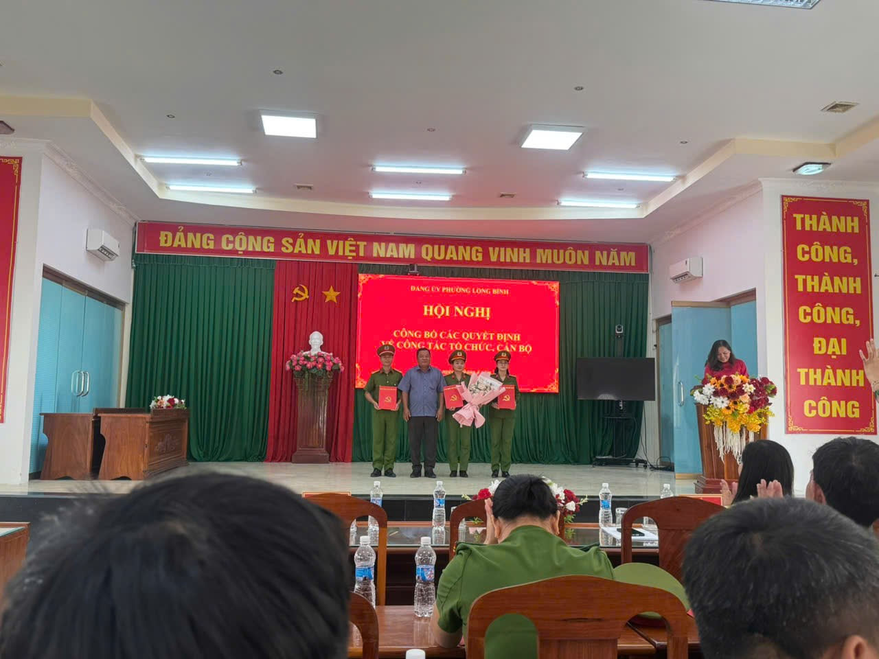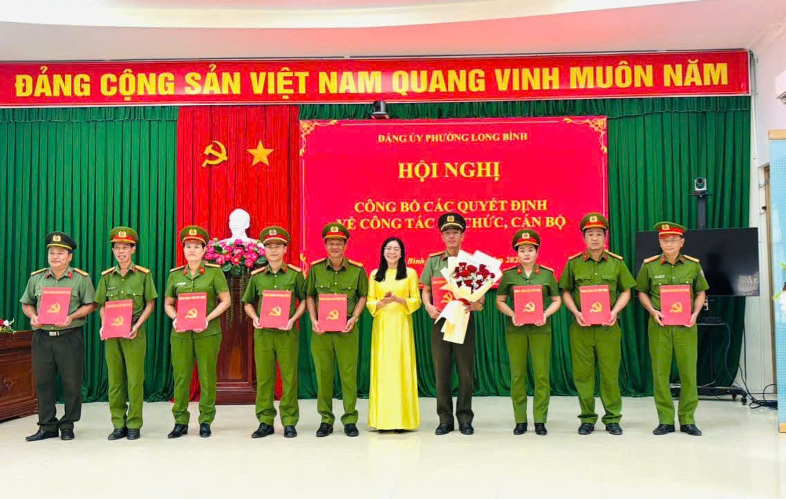 Tại hội nghị, Ban Tổ chức Đảng ủy phường đã công bố Quyết định thành lập Đảng bộ cơ sở Công an phường Long Bình với Ban Chấp hành gồm 11 đồng chí và Ban Thường vụ gồm 03 đồng chí. Trung tá Phạm Hoàng Ân – Ủy viên Ban Thường vụ Đảng ủy phường, Trưởng Công an phường được chỉ định giữ chức Bí thư Đảng ủy cơ sở Công an phường. Trung tá Phan Hoàng Riêng - Ủy viên Ban Chấp hành Đảng ủy phường được chỉ định giữ chức Phó Bí thư Đảng ủy cơ sở Công an phường.