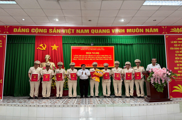 Ngay sau khi được thành lập, tập thể Đảng ủy Công an xã xác định rõ quyết tâm chính trị, phát huy tinh thần đoàn kết, trách nhiệm, trung thành tuyệt đối với Đảng, với Tổ quốc và Nhân dân; tập trung xây dựng Đảng bộ trong sạch, vững mạnh toàn diện; nâng cao năng lực lãnh đạo và sức chiến đấu của tổ chức cơ sở đảng. Đồng thời, chủ động tham mưu Cấp ủy, chính quyền địa phương thực hiện hiệu quả công tác bảo đảm an ninh, trật tự; kiên quyết đấu tranh phòng, chống tội phạm và tệ nạn xã hội; không để phát sinh “điểm nóng”, phức tạp về an ninh, trật tự; giữ vững ổn định địa bàn ngay từ cơ sở, góp phần xây dựng lực lượng Công an xã chính quy, tinh nhuệ, từng bước hiện đại, gần dân, sát dân, vì Nhân dân phục vụ. Tiếp tục kiện toàn tổ chức đảng trong đơn vị, sáng ngày 13/3/2026, tại Hội trường Công an xã Trường Long Tây đã tổ chức Hội nghị công bố Quyết định thành lập 05 chi bộ trực thuộc Đảng bộ Công an xã, đồng thời chỉ định Bí thư các chi bộ gồm: Chi bộ Tổ An ninh, Chi bộ Tổ Tổng hợp, Chi bộ Tổ Cảnh sát trật tự, Chi bộ Tổ Cảnh sát khu vực và Chi bộ Cảnh sát phòng, chống tội phạm.