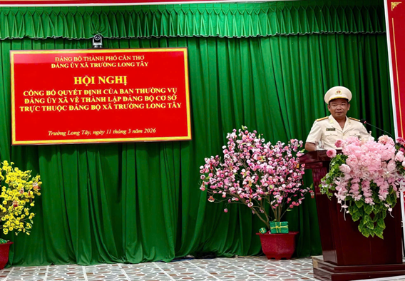 Căn cứ Quy định số 294-QĐ/TW ngày 26/5/2025 của Ban Chấp hành Trung ương về thi hành Điều lệ Đảng; Hướng dẫn số 06-HD/TW ngày 09/6/2025 của Ban Bí thư hướng dẫn một số vấn đề cụ thể thi hành Điều lệ Đảng; Quy định số 343-QĐ/TW ngày 23/7/2025 của Bộ Chính trị về tổ chức đảng trong Công an nhân dân, ngày 11/3/2026, tại Trung tâm Văn hóa xã Trường Long Tây, Ban Xây dựng Đảng xã đã tổ chức công bố Quyết định thành lập Đảng ủy Công an xã Trường Long Tây trực thuộc Đảng bộ xã.
