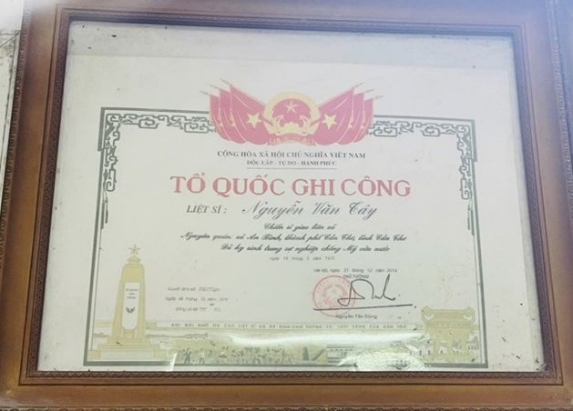 Bằng Tổ Quốc ghi công của Liệt sĩ Nguyễn Văn Tây