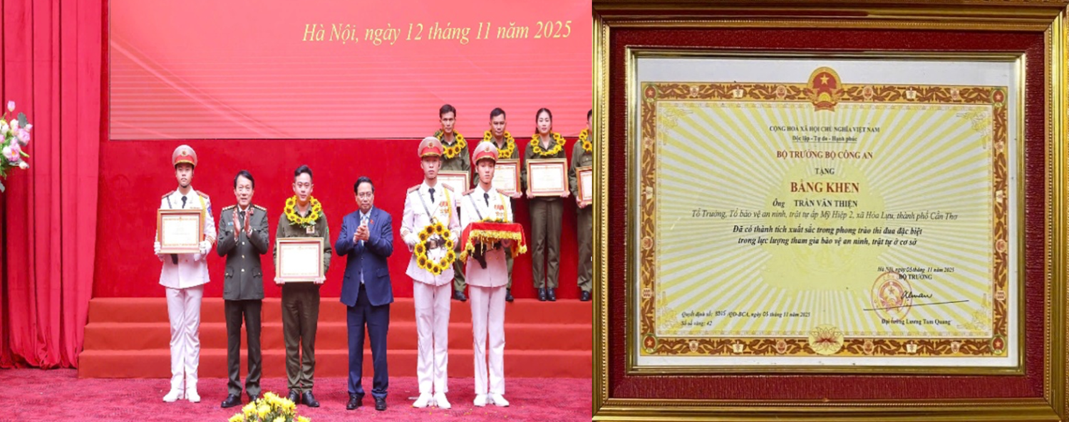 Đồng chí Trần Văn Thiện vinh dự được Bộ Công an tuyên dương, tặng Bằng khen trong phong trào thi đua của lực lượng tham gia bảo vệ ANTT cơ sở.