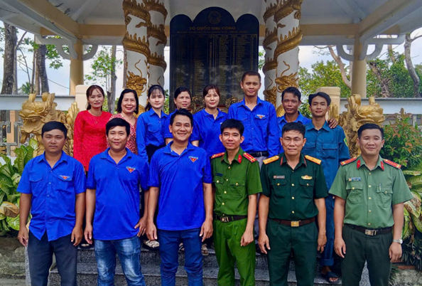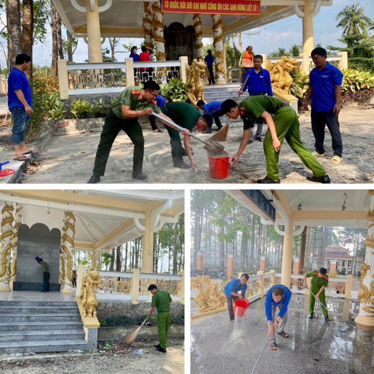 Đoàn viên, thanh niên Công an xã Lương Tâm phối hợp Xã đoàn Lương Tâm vệ sinh Nhà bia tưởng niệm anh hùng liệt sĩ