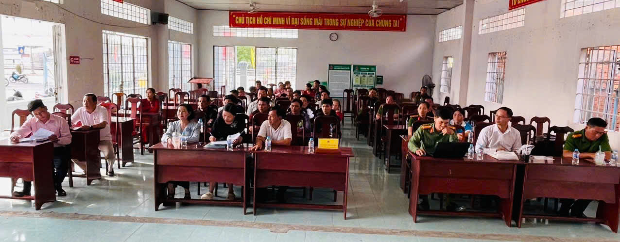 Đồng chí Nguyễn Thành Kế, Chủ tịch Ủy ban nhân dân xã cùng đại biểu tại buổi hội nghị tuyên truyền pháp luật và tư vấn hướng nghiệp.