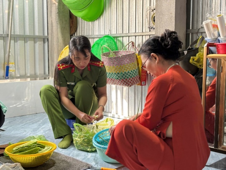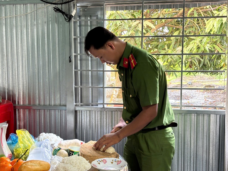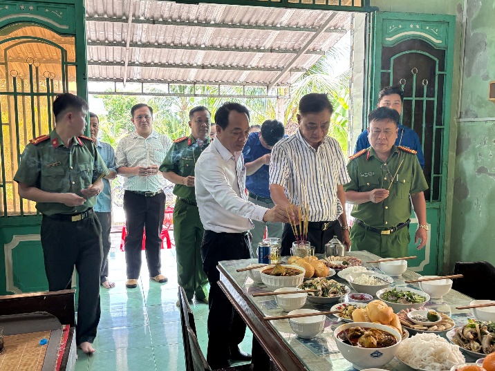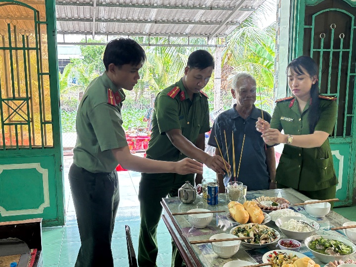 Sau nghi thức dâng hương, đoàn công tác đã quây quần bên mâm cơm thân mật, cùng dùng bữa với chú Sáu, lắng nghe những câu chuyện đời, chuyện cách mạng, qua đó nuôi dưỡng tình cảm gần gũi, sự quan tâm và sự biết ơn chân thành của lực lượng Công an nhân dân đối với những thế hệ đi trước đã hy sinh quên mình vì sự nghiệp chung của dân tộc Việt Nam.