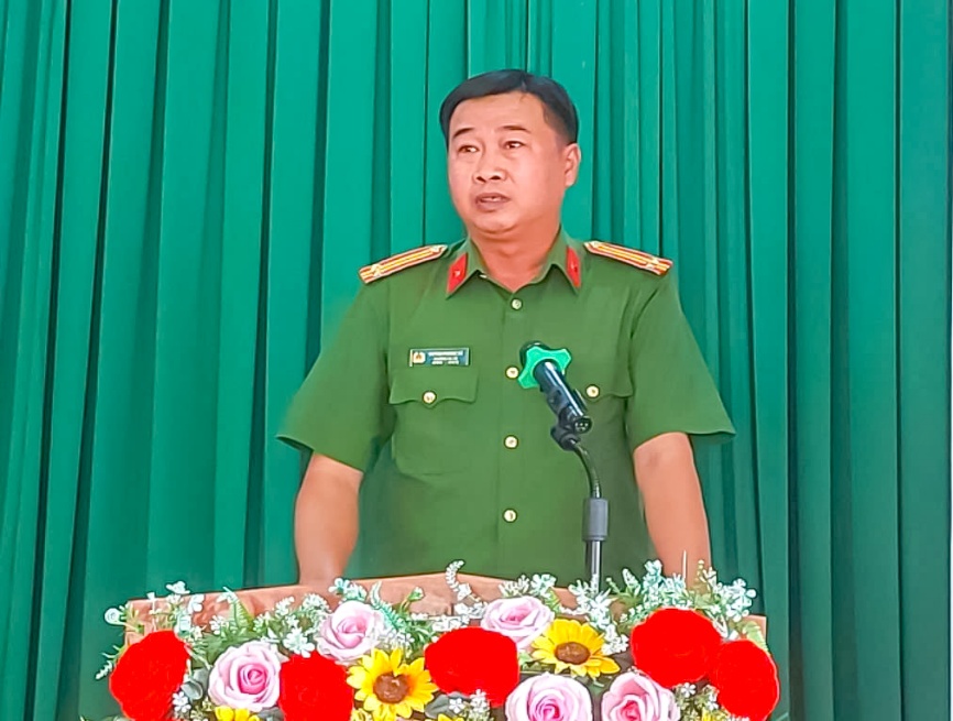 Trung tá Huỳnh Phong Vũ, Trưởng Công an xã Tân Thạnh phát biểu tiếp thu tại Hội nghị