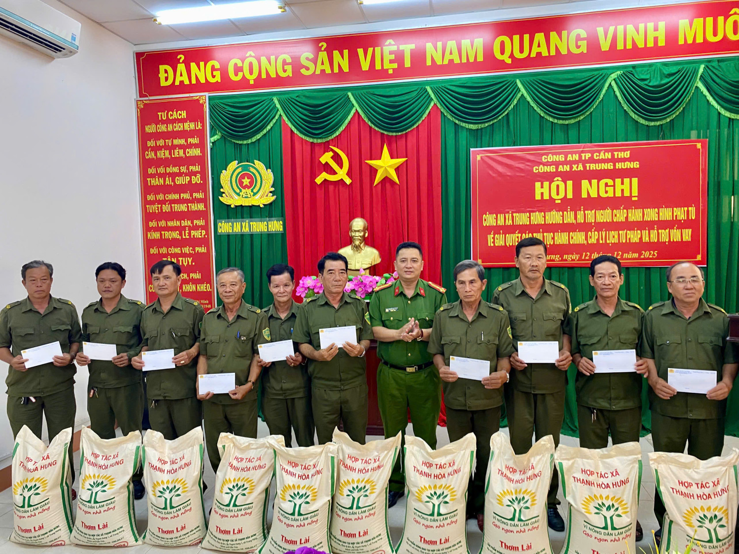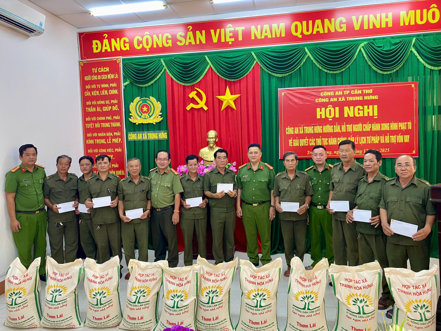 Nhân dịp Tết Nguyên đán Bính Ngọ 2026, Công an xã Trung Hưng tổ chức thăm hỏi, tặng 61 phần quà cho lực lượng tham gia bảo vệ an ninh, trật tự ở cơ sở trên địa bàn xã, với tổng kinh phí hơn 48 triệu đồng. Những phần quà tuy giá trị vật chất không lớn nhưng thể hiện sự quan tâm, ghi nhận và trân trọng của Công an xã đối với những đóng góp thầm lặng, bền bỉ của lực lượng tại cơ sở.