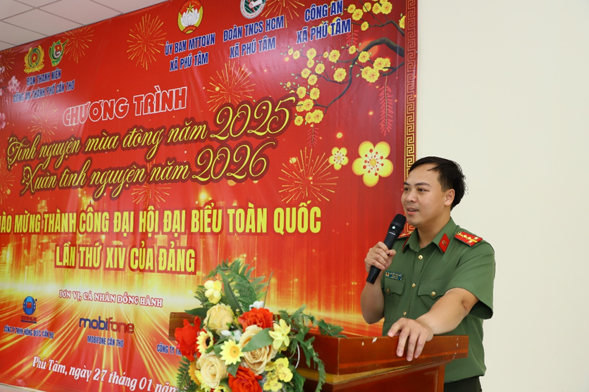 Chương trình do Ban Thanh niên Công an thành phố Cần Thơ chủ trì, phối hợp với Ủy ban MTTQ Việt Nam xã Phú Tâm, Đoàn Thanh niên xã Phú Tâm và Công an xã Phú Tâm tổ chức, với sự đồng hành, hỗ trợ của các đơn vị, cá nhân gồm: Bệnh viện Mắt Sài Gòn Cần Thơ; Công ty TNHH Hồng Đức; Mobifone Cần Thơ; Công ty TNHH Gia công Cám gạo Honoroad Việt Nam; cùng các nhà hảo tâm tại TP. Hồ Chí Minh. Đây là một trong những hoạt động trọng điểm trong chuỗi chương trình “Tình nguyện mùa đông năm 2025 – Xuân tình nguyện năm 2026” do Ban Thanh niên Công an thành phố phát động, đồng thời là hoạt động thiết thực chào mừng thành công Đại hội Đại biểu toàn quốc lần thứ XIV của Đảng. Trong khuôn khổ chương trình, Ban Tổ chức đã triển khai nhiều hoạt động thiết thực, ý nghĩa, tập trung vào công tác tuyên truyền pháp luật, chăm lo đời sống và bảo đảm an sinh xã hội cho người dân trên địa bàn.